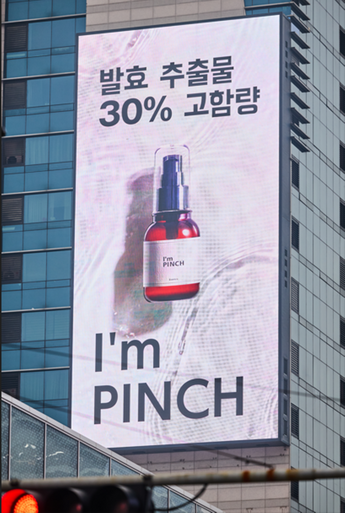 その弘大入口駅2番出口、駅前の大型ビルボードに、株式会社未来の「アイムピンチ」が掲出されました。