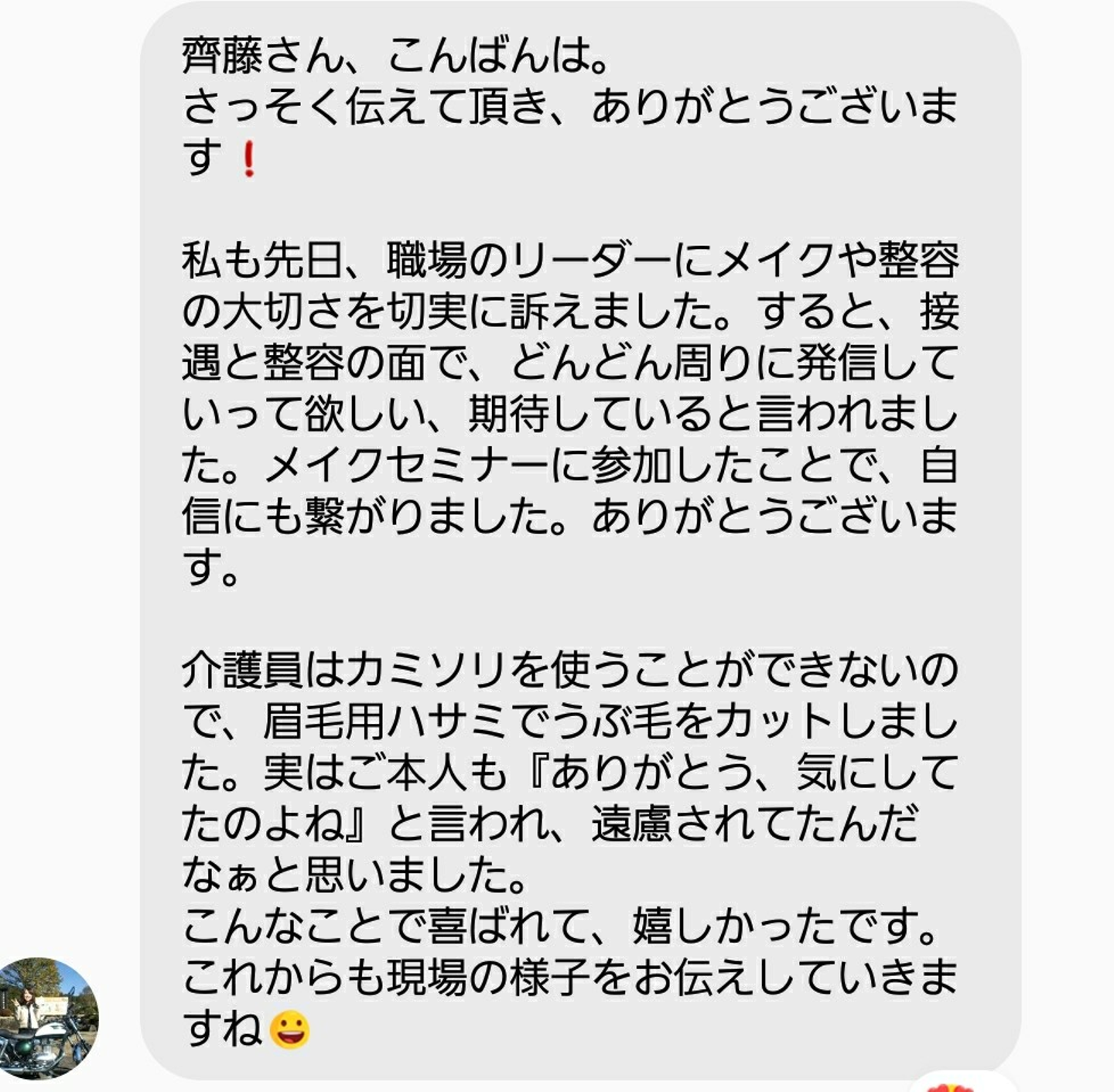 メイクセラピーに参加された方より嬉しいメッセージが届きました。