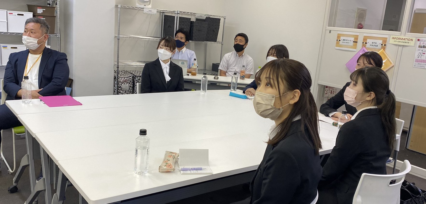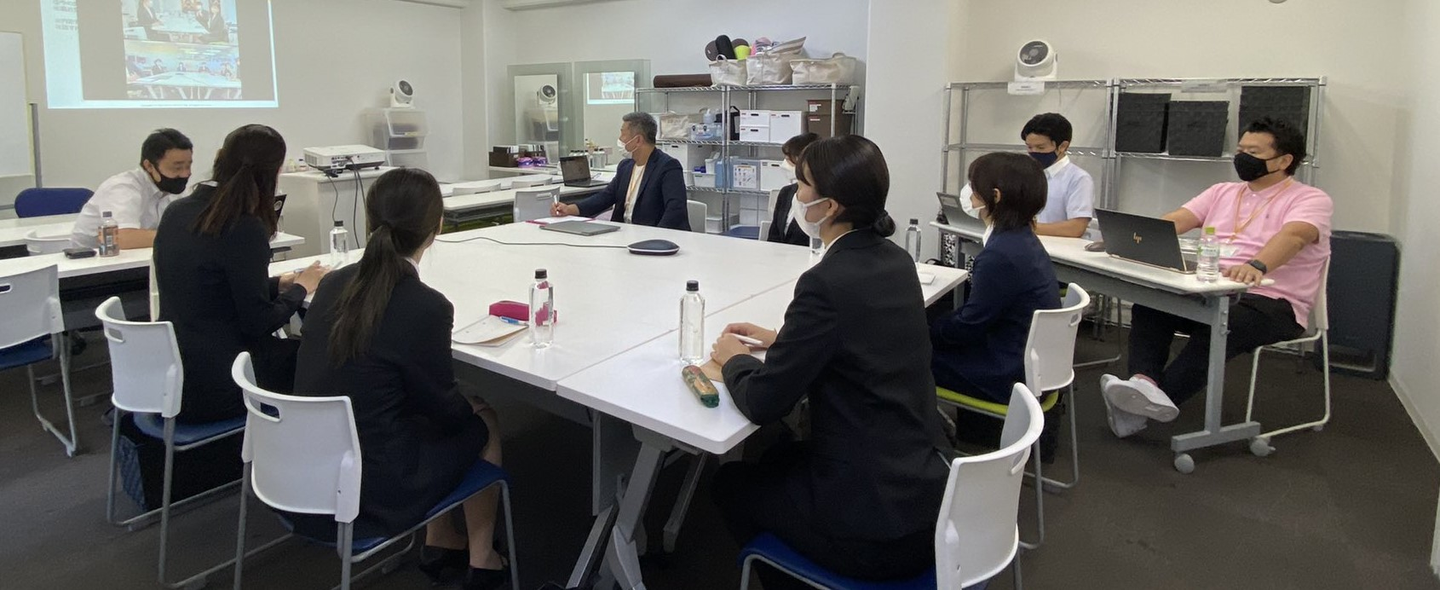 東京と大坂をオンラインで繋ぎ、参加した内定者の皆さんがしっかりとコミュニケーション取れるようにしております。残念ながら、新型コロナの感染者がまた増えてきたことで、食事の懇親会は中止となりましたが、その分会議室での交流の時間をたくさん設けて、色々なお話しをしていただきました。