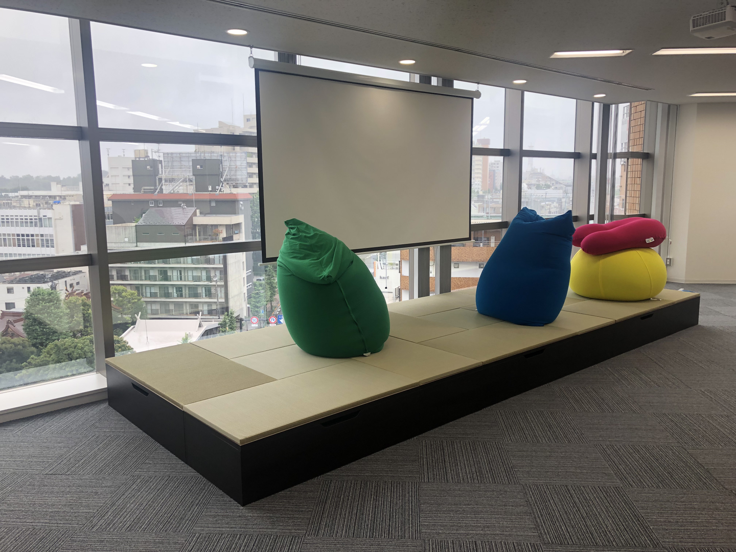 執務エリア内に、畳のスペースもあります。大きなYogibo(ビーズクッション)も!