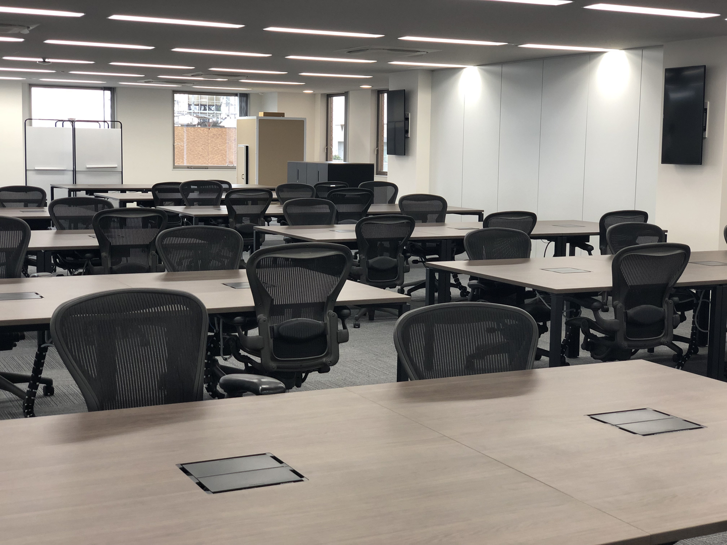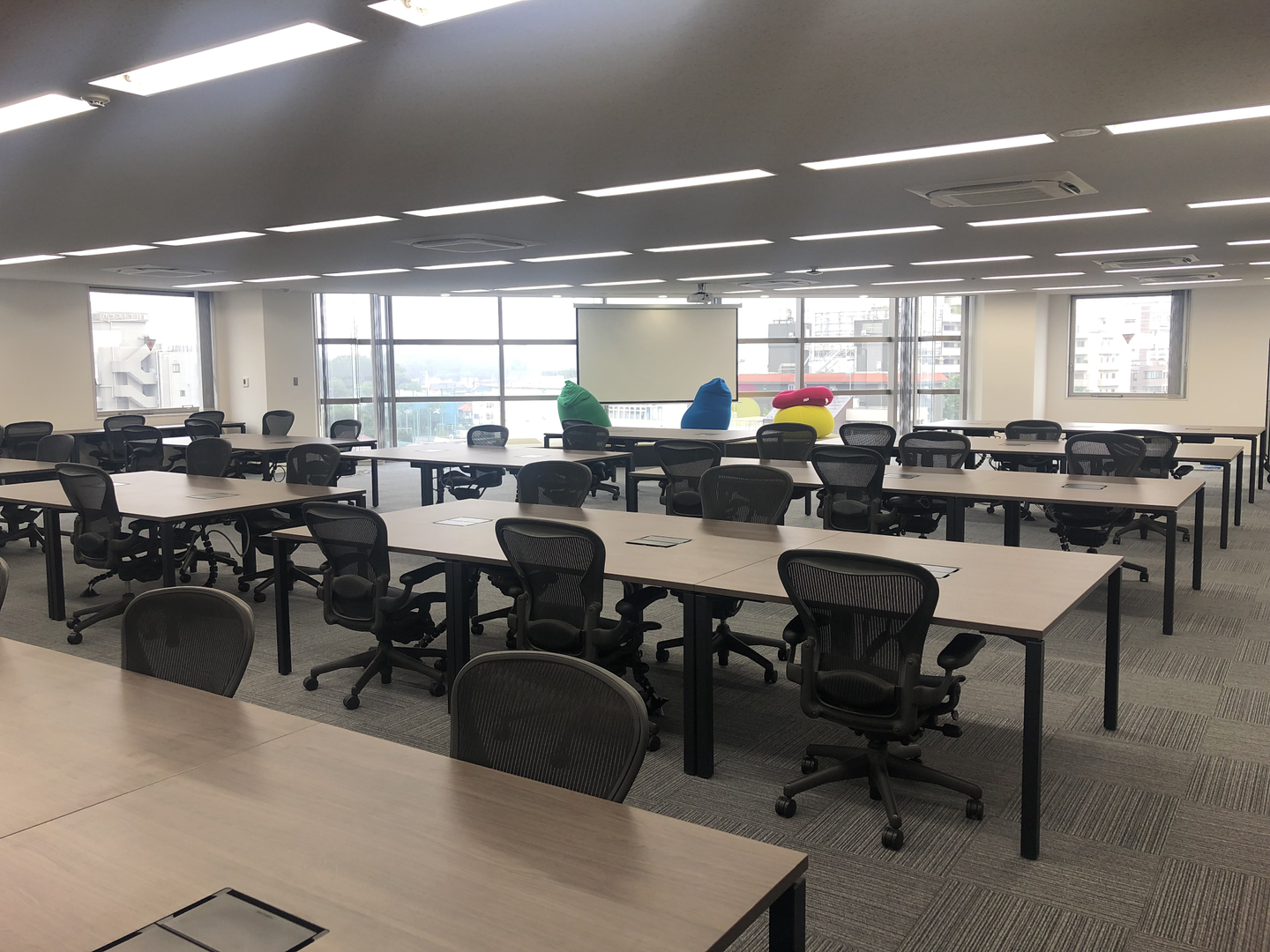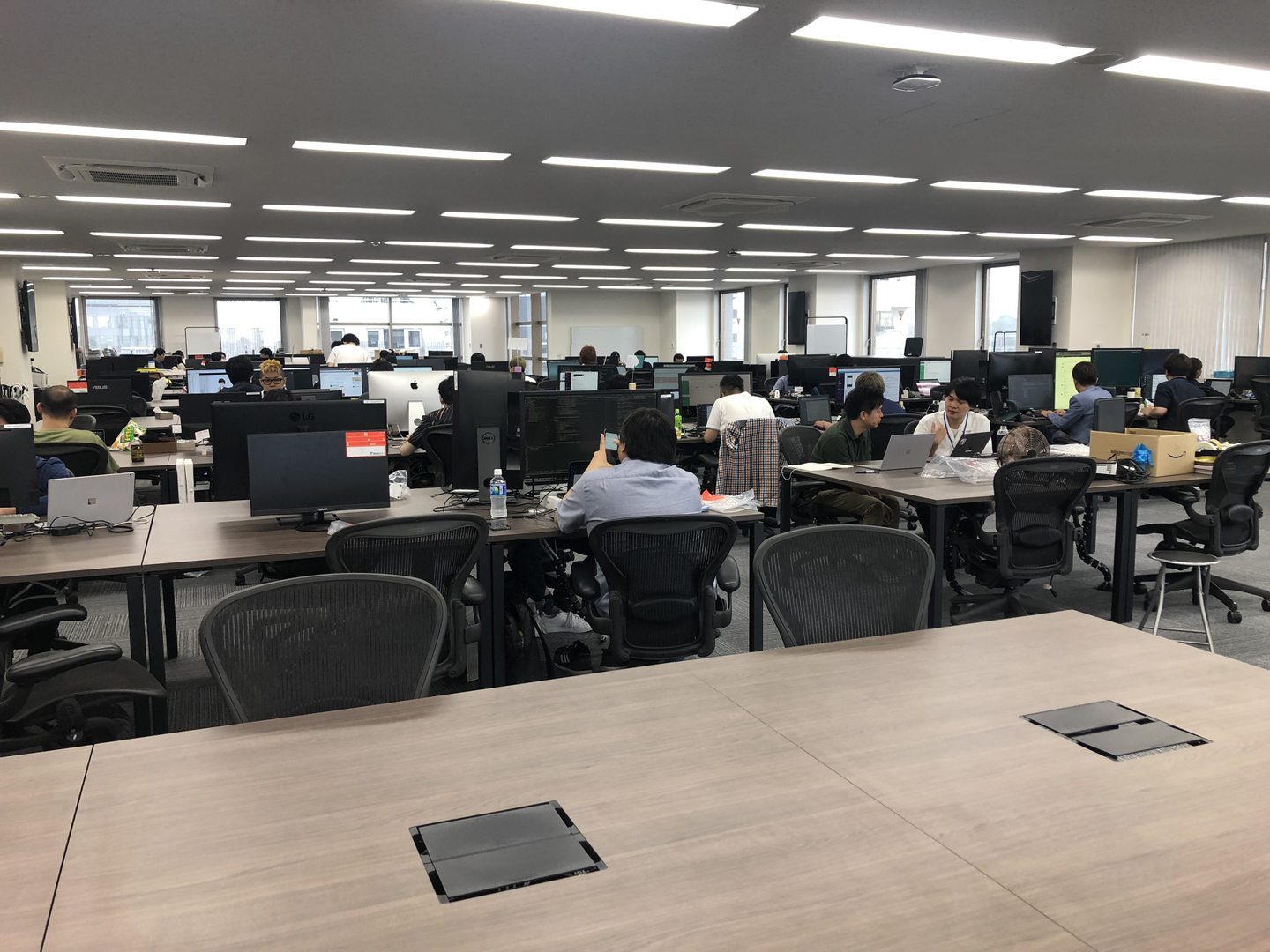 渋谷のオフィスでは1部屋ではスペースが足りず、5部屋に別れて仕事をしていたのですが、新オフィスでは1フロアでみんな一緒!これはとても嬉しい!ひろいぞ〜!