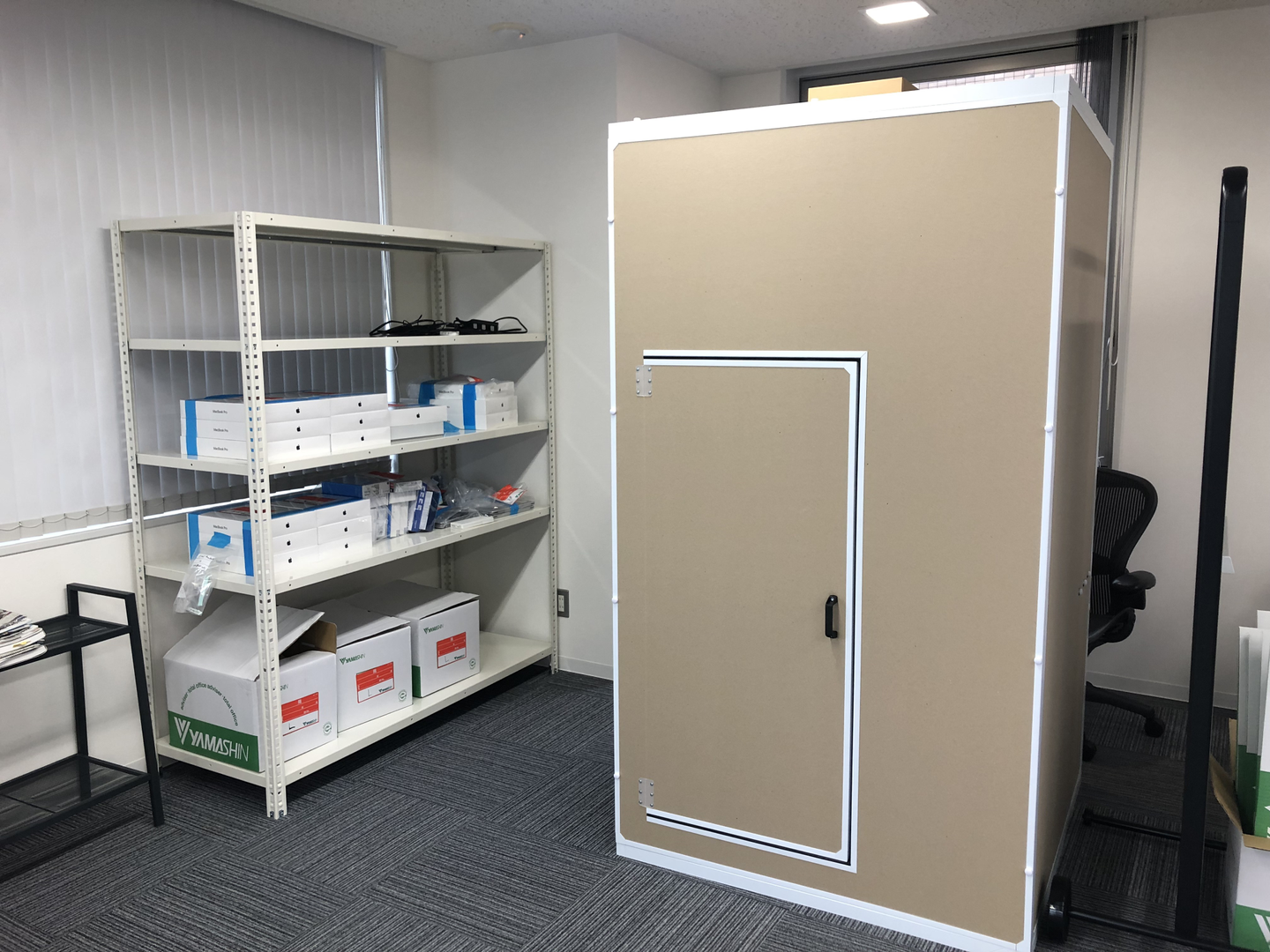 「だんぼっち」という簡易防音室もあります。仕事の合間のMirrativ配信もばっちりです◎