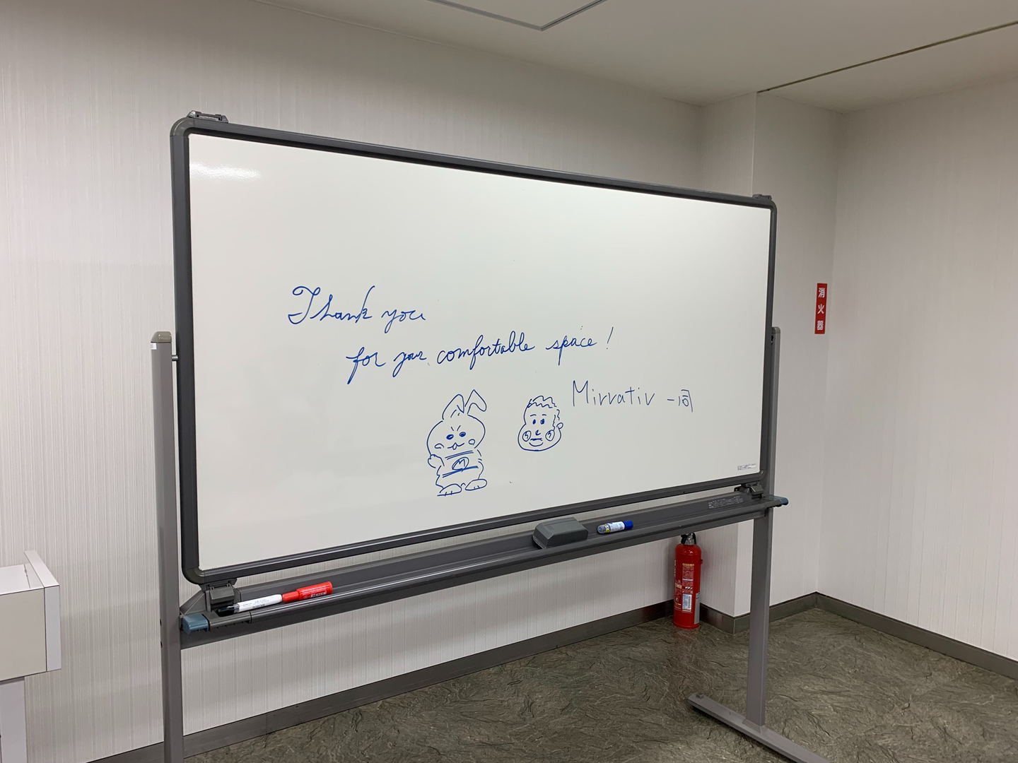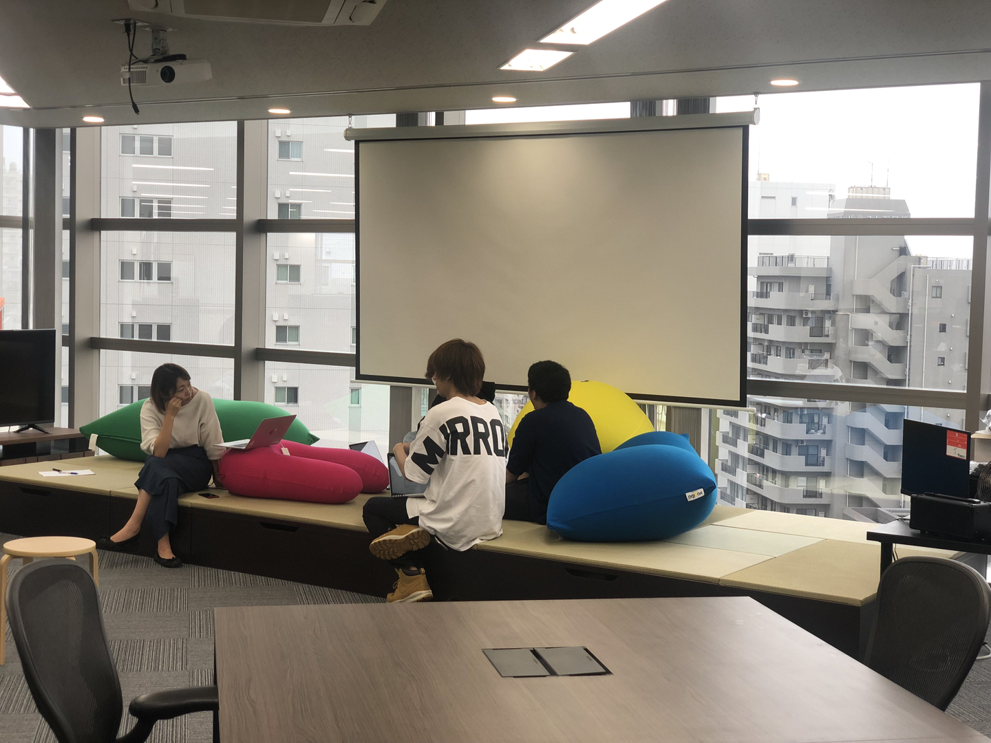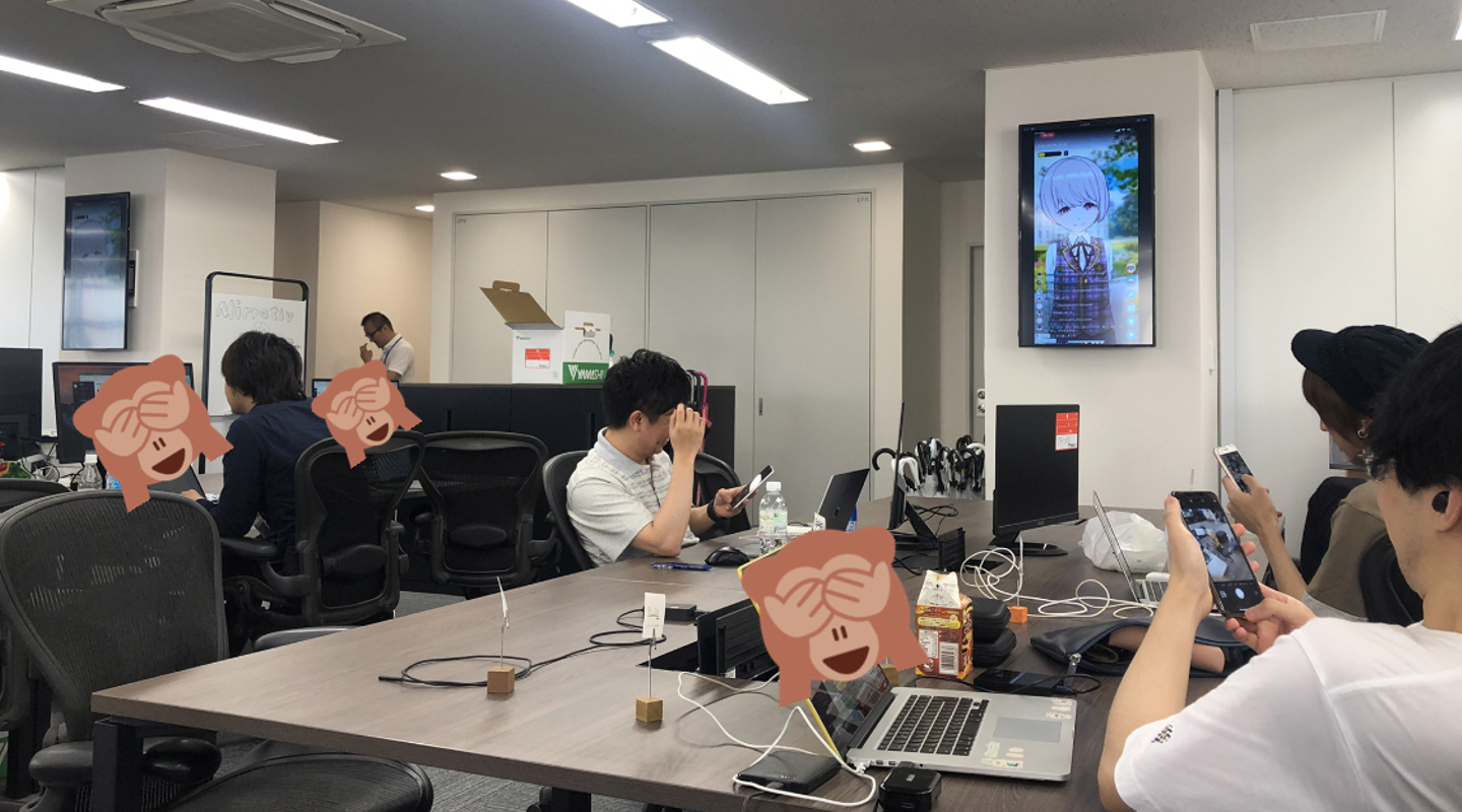 現在は、ミラティブのオフィスには個室の会議室がなく(8月完成予定)、お客様は、執務エリア内のスペース or 近くの貸し会議室にてお打ち合わせをお願いしております。