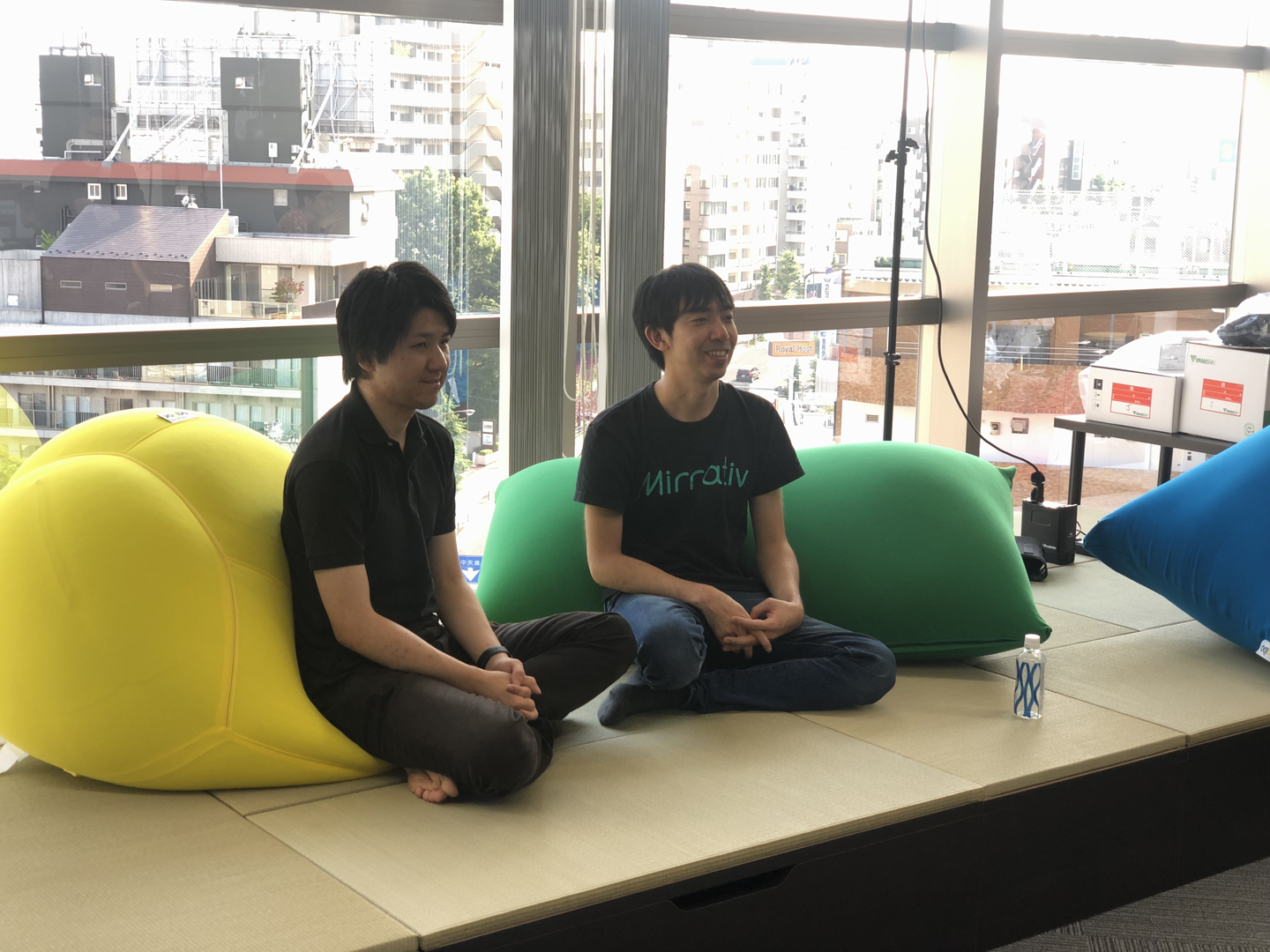 靴を脱いでリラックスもできます。CEO赤川さん、CTO夏さん。
