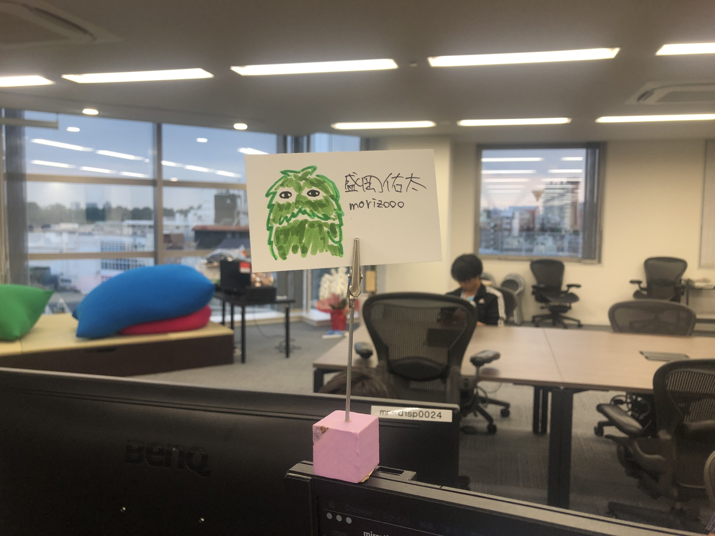引っ越し初日の朝の風景。コミュニティチームとCSチームのミーティングで早速利用していました。