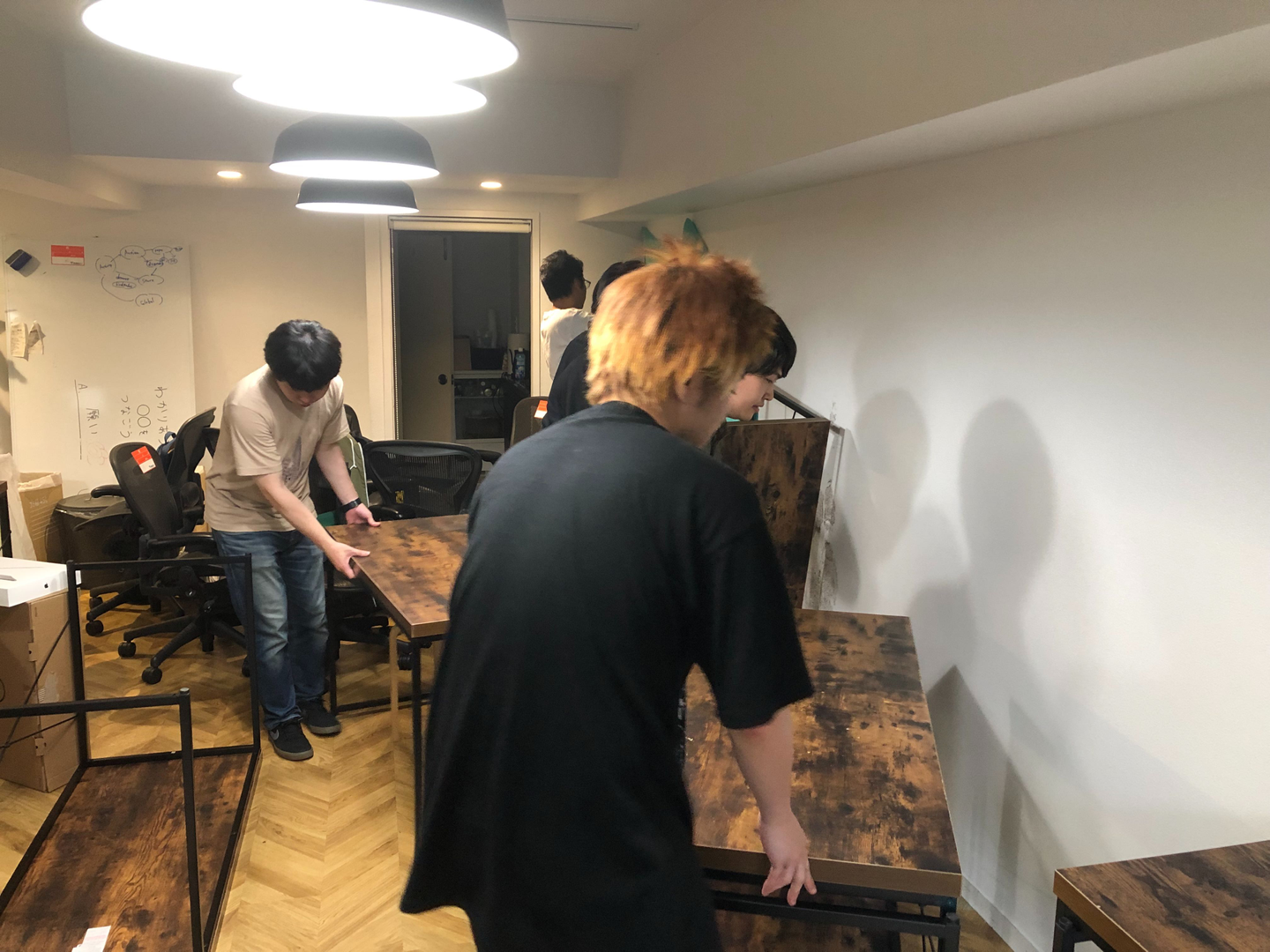 みんなで協力してお引越し作業をしました!お世話になった机たちは、現在も他スタートアップ企業さまの手に渡り、活躍しているとのことで嬉しい😊
