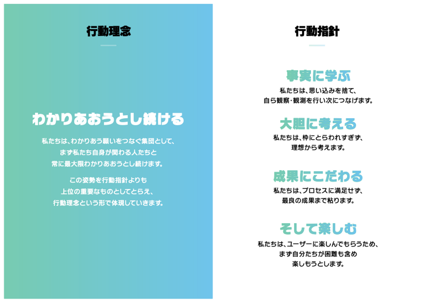 引用元: 【ミラティブ】行動理念/行動指針/わかりあおうとし続けるガイドライン