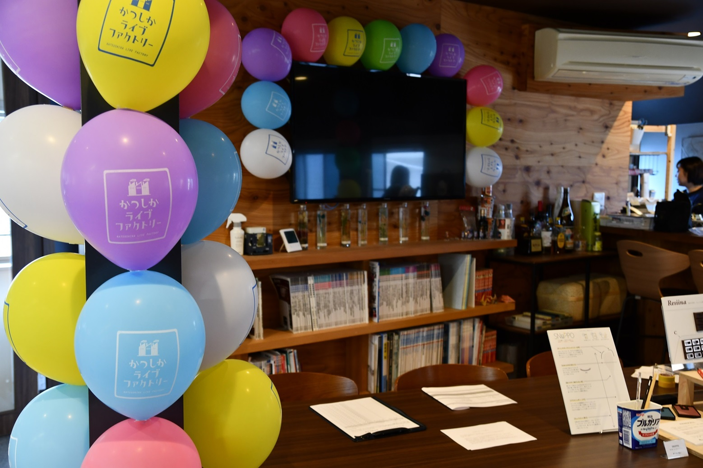 今年は去年より飾り付けもバージョンアップして頑張ってみました。ロゴ入り風船かわいいですよね。