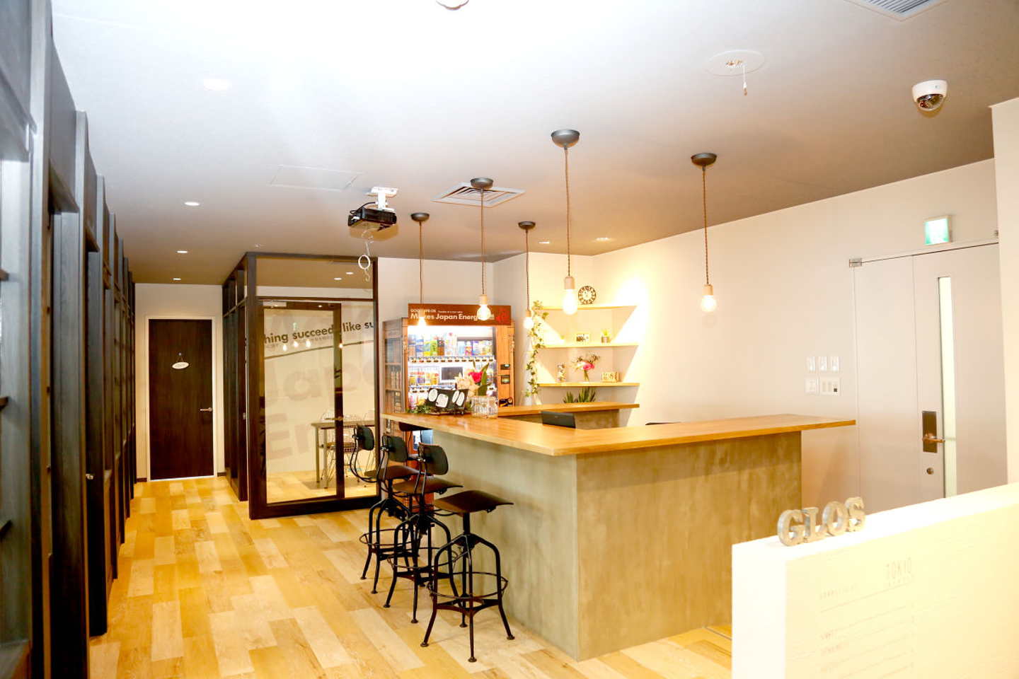 Wi-fi、電源が備えられたバーカウンターと、ガラスに囲まれた個室空間を作業スペースとしてご利用いただけます。