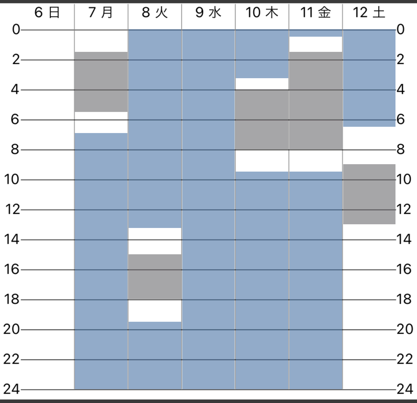 (↑おかしな働き方をしていた頃の記録。ブルーが仕事、グレーが睡眠。)
