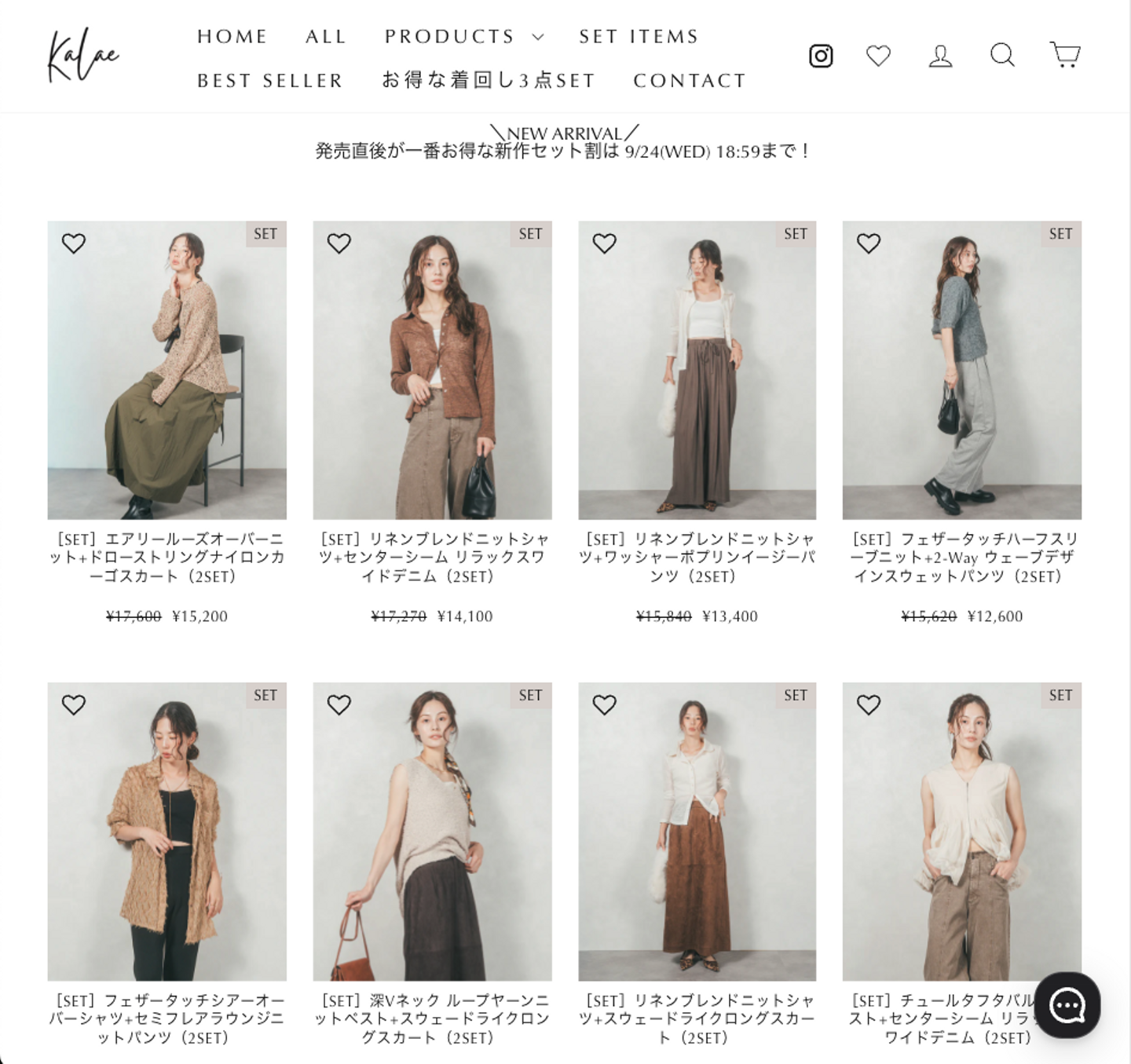 KaLaeは自社製造ではなく、卸問屋や商社からお洋服をセレクトし、単体またはコーデセットとしてお届けしています。1週間ごとに、6アイテム・10コーデの新作をご用意します。