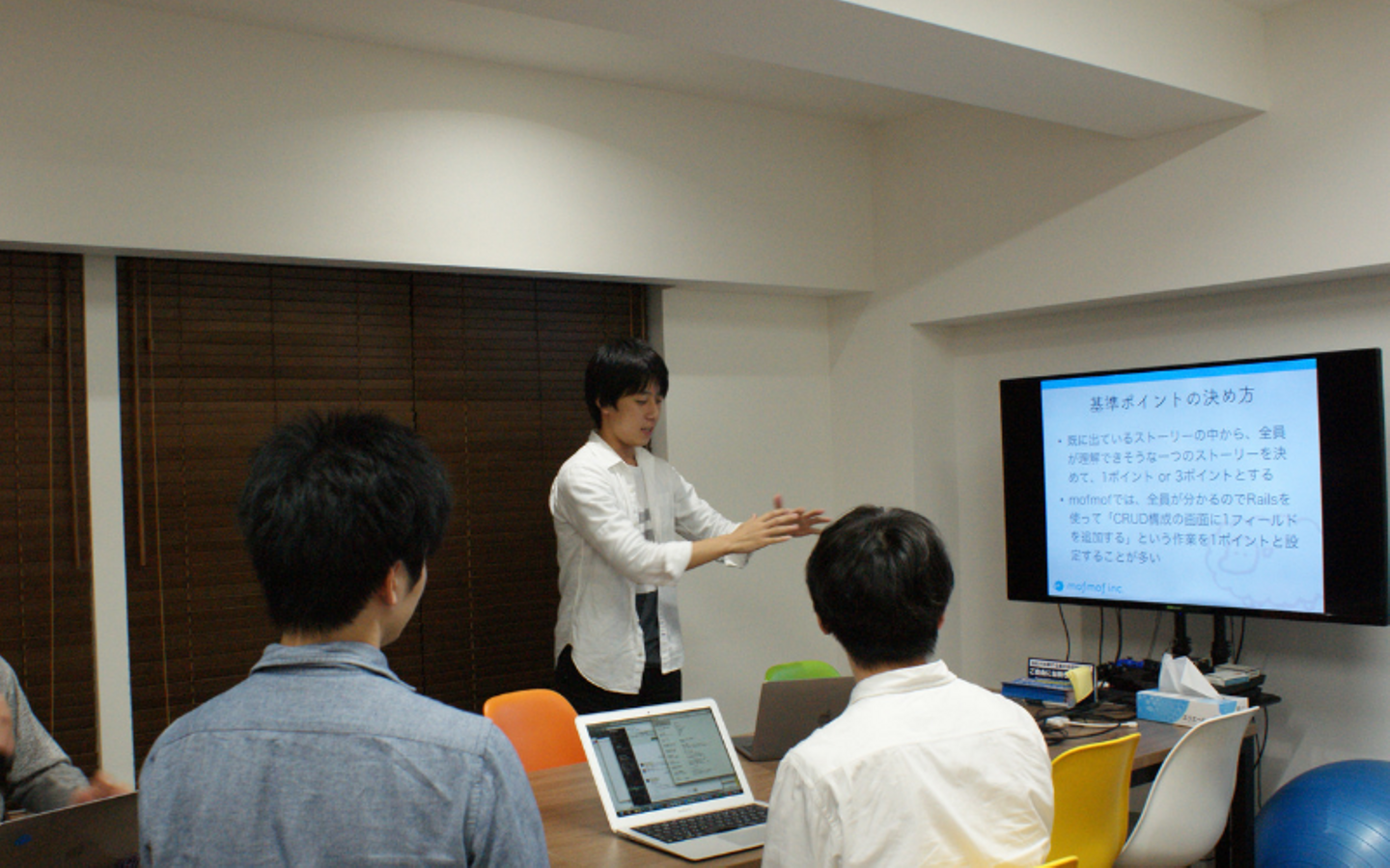 mofmof inc.は渋谷区桜丘町にある会社です。メンバーは約15名、約9割がエンジニアで、現在4期目の会社です。代表取締役の原田も現役エンジニアです。