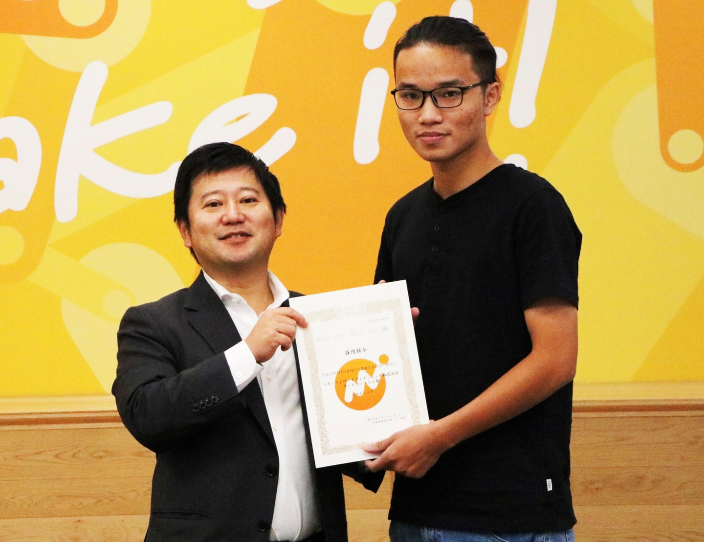 今回入社された7名に、代表の辻から一人ひとりに入社辞令を手渡しました。