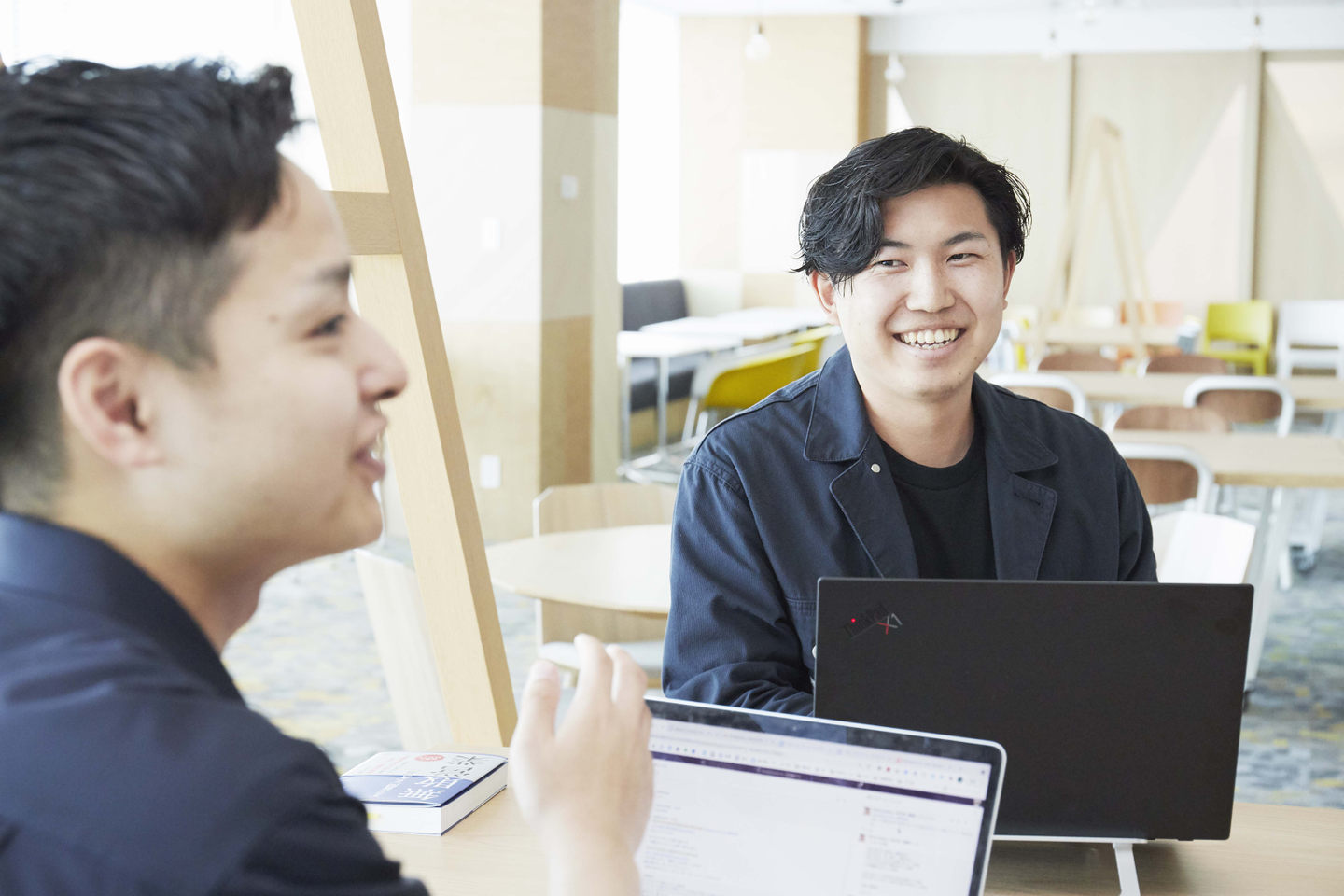 嬉野:チームリーダーなんですけど、距離が近い感じがあって、どんなことでもフランクに相談できる人ですね。あと、私にはそこまでの思考はとてもできないというくらい、ものすごく物事を考えている人。
