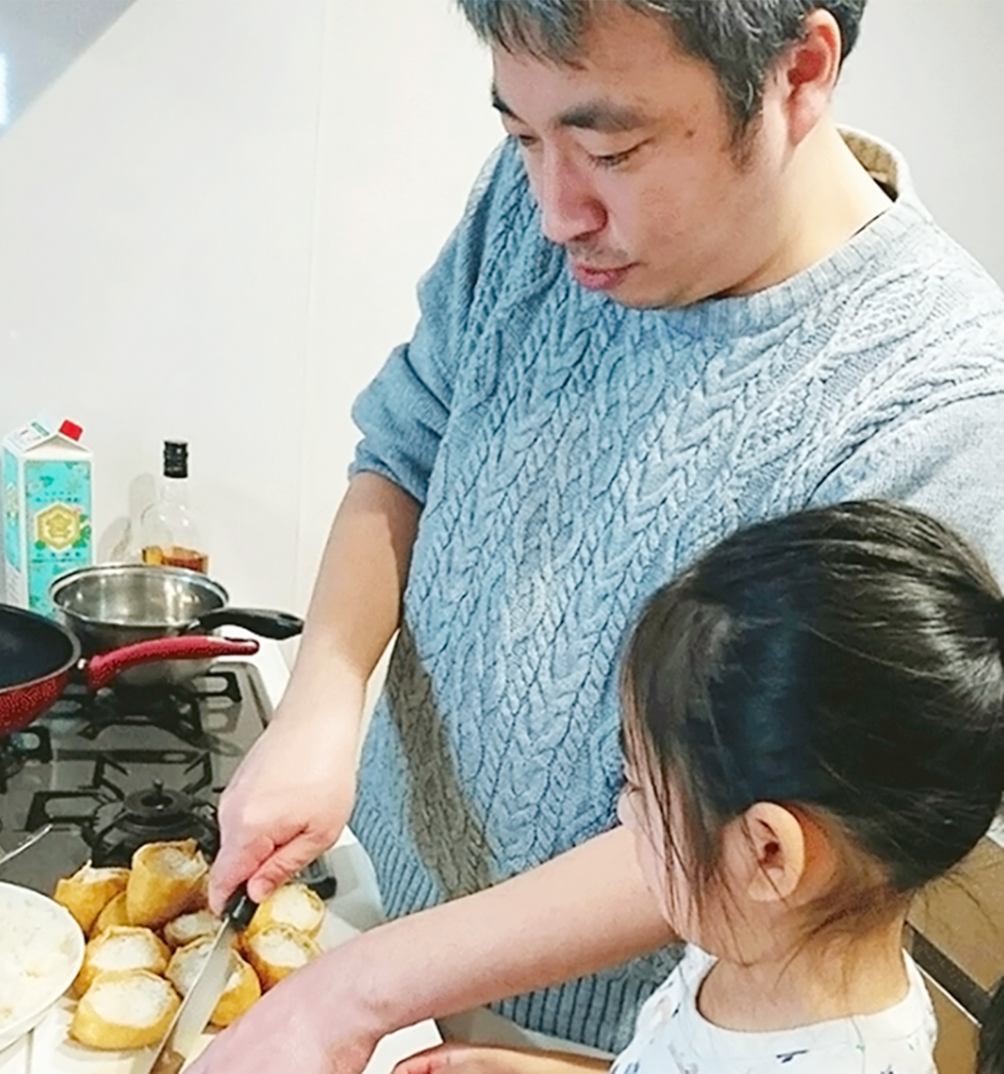 休日は家族と過ごすことが多いです。料理が好きなので、娘と一緒に料理することも。