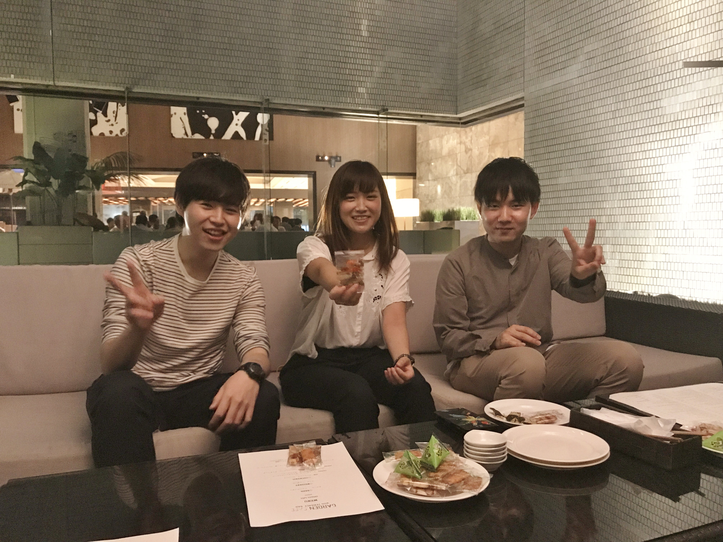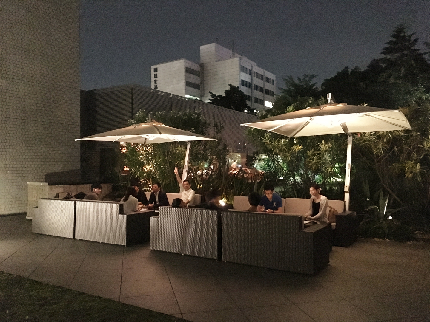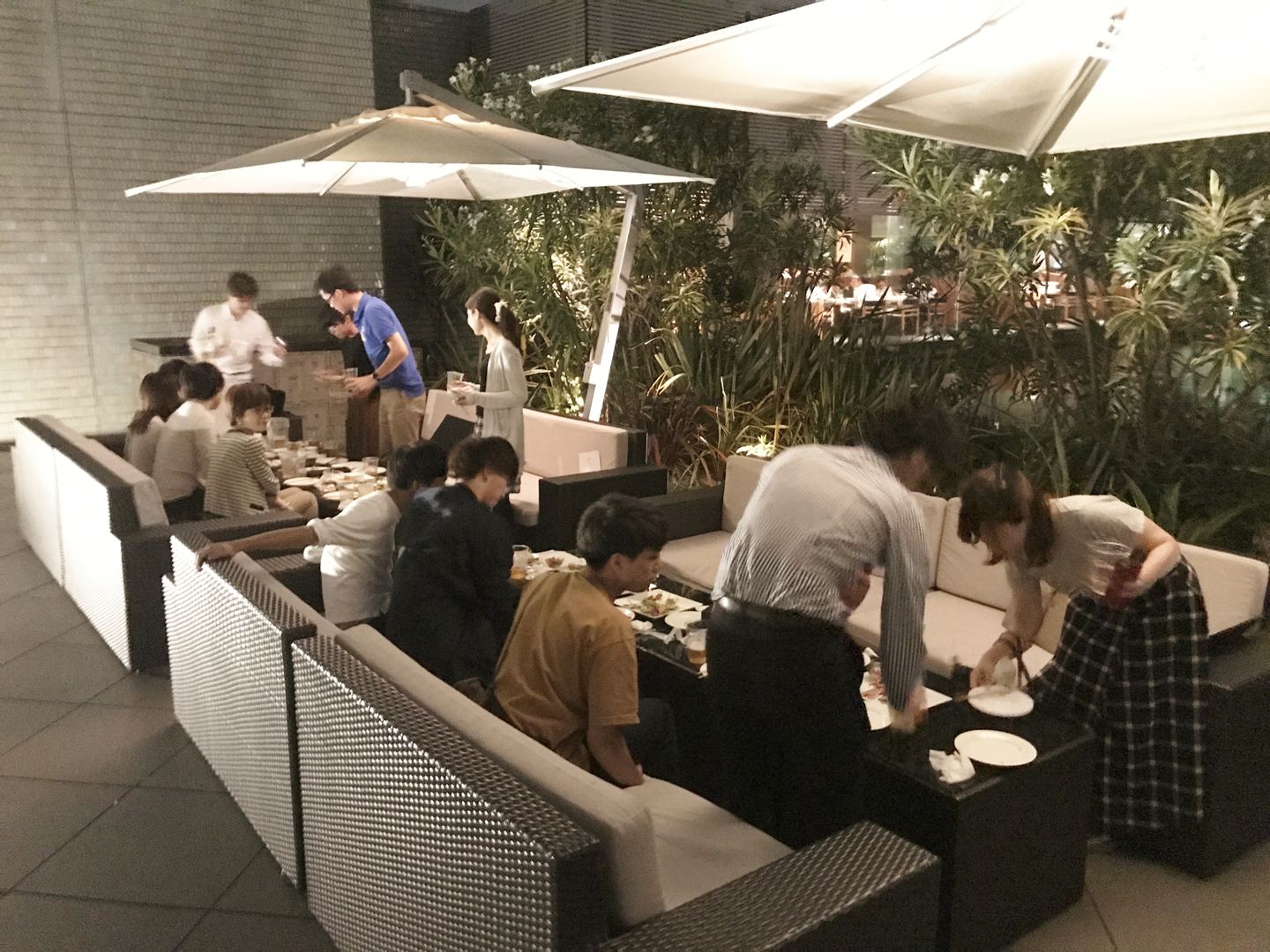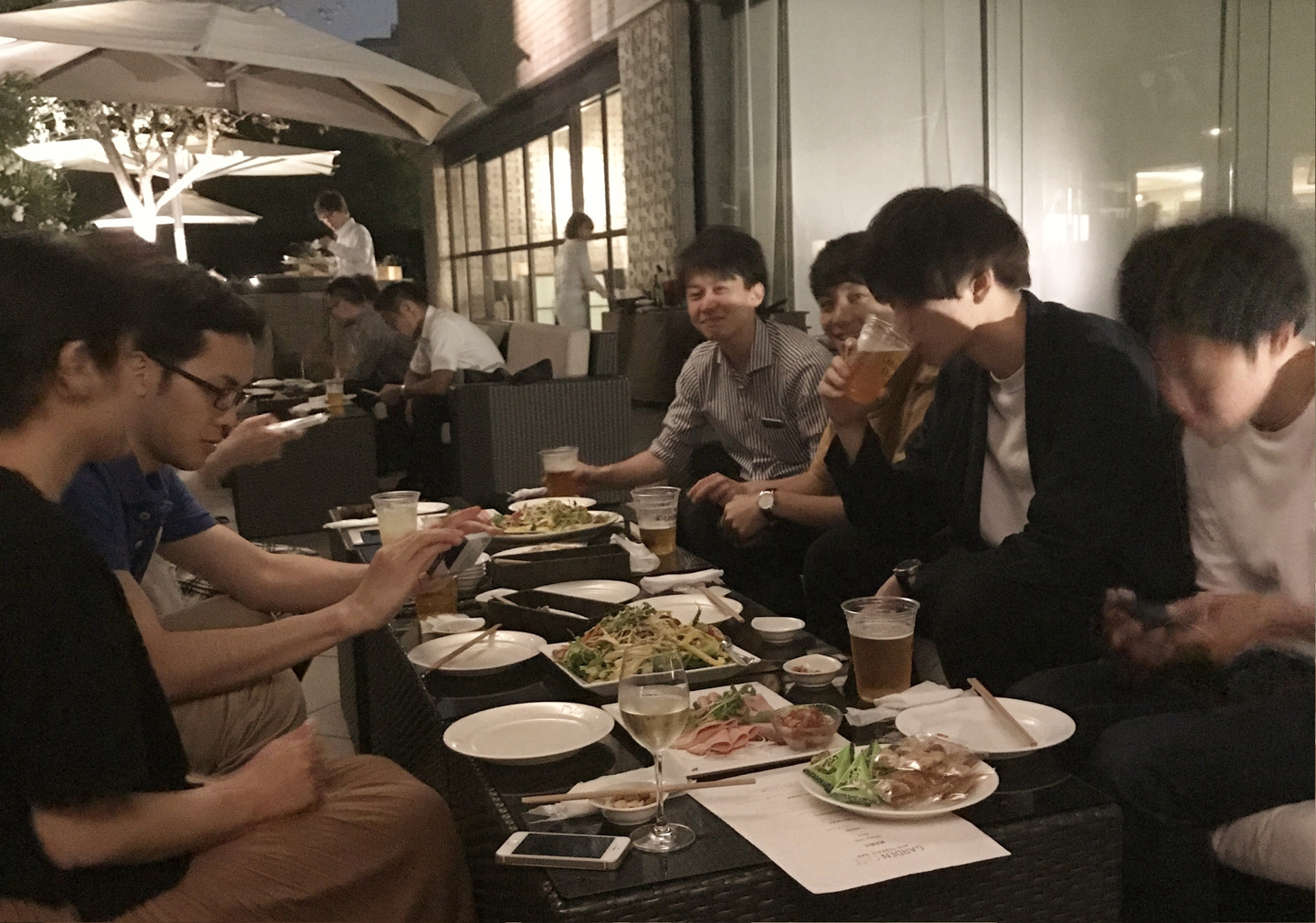 同期会の会場は、品川駅すぐのホテル内にあるレストラン『ガーデンカフェ ウィズテラスバー』。周りを木々に囲まれた静かなテラス席でした、素敵! いまきっと皆さん同じことを考えていると思いますが、もちろん隣の席では合コンが開催されていましたよ。