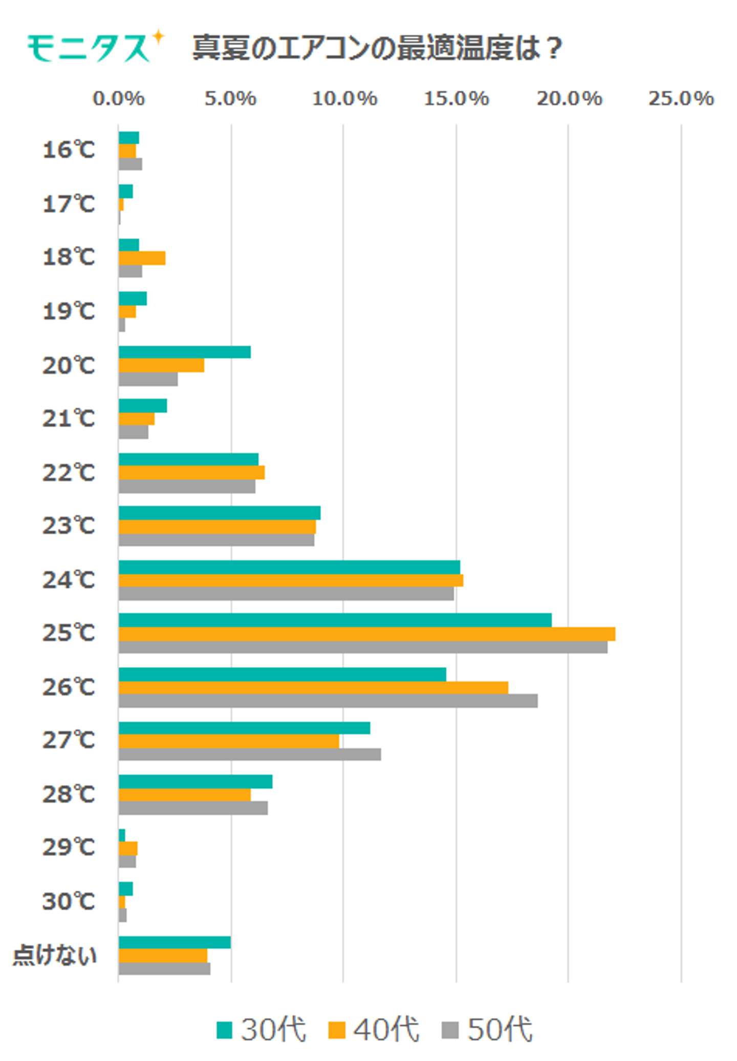 年代差はあまりなく、どの年代でも「25度」が第1位でした!
