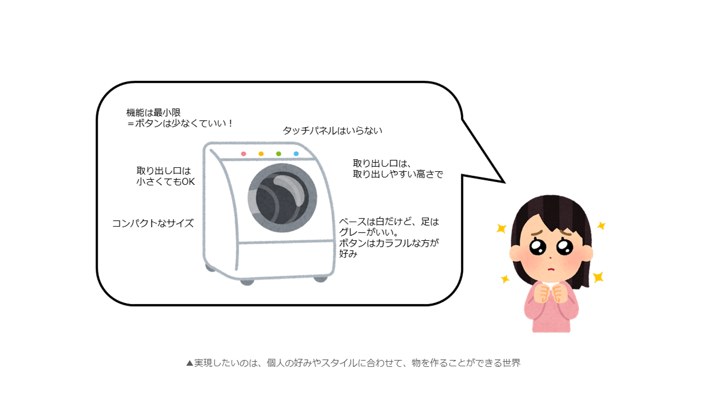 多様化が進む世界において、個別化・最適化が唱えられています。家や車といった高単価商品から、お箸・アクセサリー・洋服といった日用品まで、自分の趣味嗜好、必要に併せてカスタマイズが当たり前の世の中になってきました。ものレボの思い描く革命とは、どんなものでも自分に合ったオリジナルの道具を使うことができる究極の個別化を可能とする未来を作ることです。