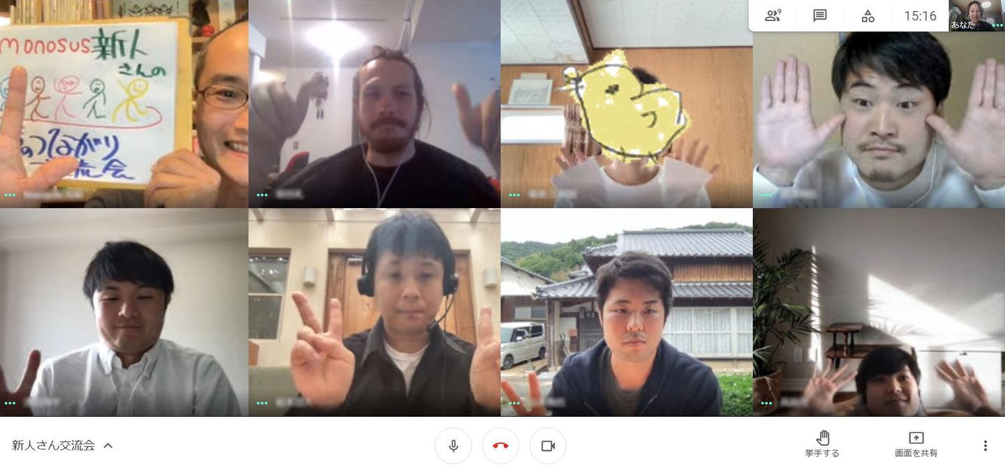 始めは恥ずかしがっていたのですが、そのうちお互いにニックネームで呼び合うように。最後に画面のキャプチャを撮ったのですが、皆にこにこして、楽しんでいる様子がうかがえました。