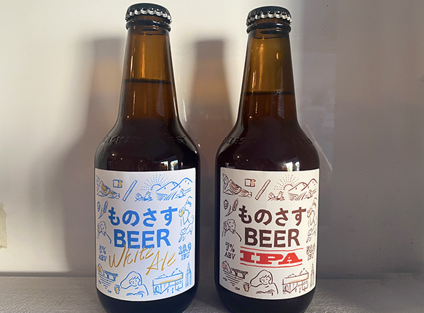 ものさすBEER White Ale【左】 ものさすBEER IPA【右】