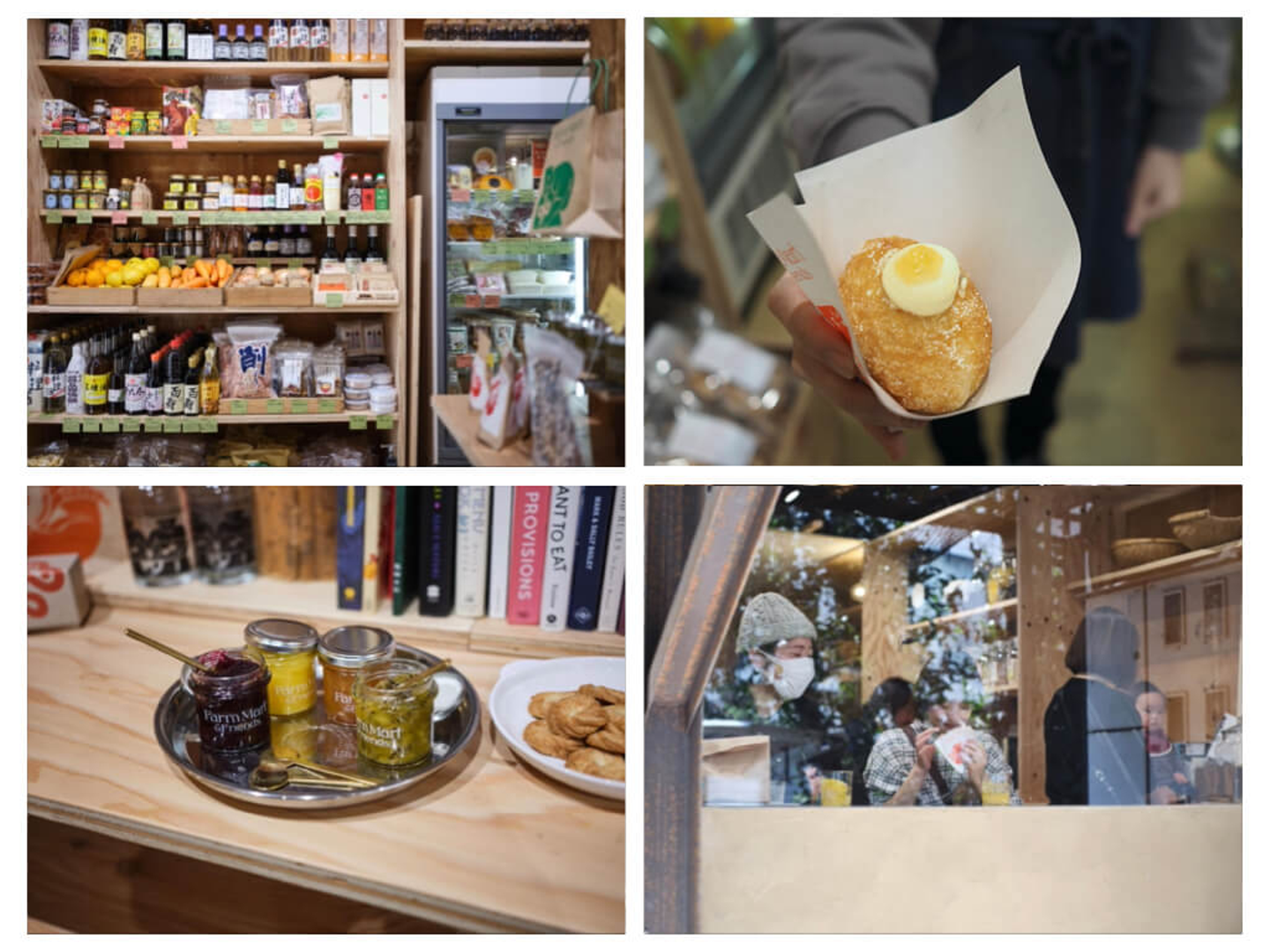 素材を味わう2種類のドーナツに加え、農家さんから届く果実や野菜をキッチンで加工したジャム。フレッシュな無農薬栽培の野菜や無添加の調味料。ナチュラルワインやクラフトビールも並びます。軽いお食事や立呑などのイートインも可能です。