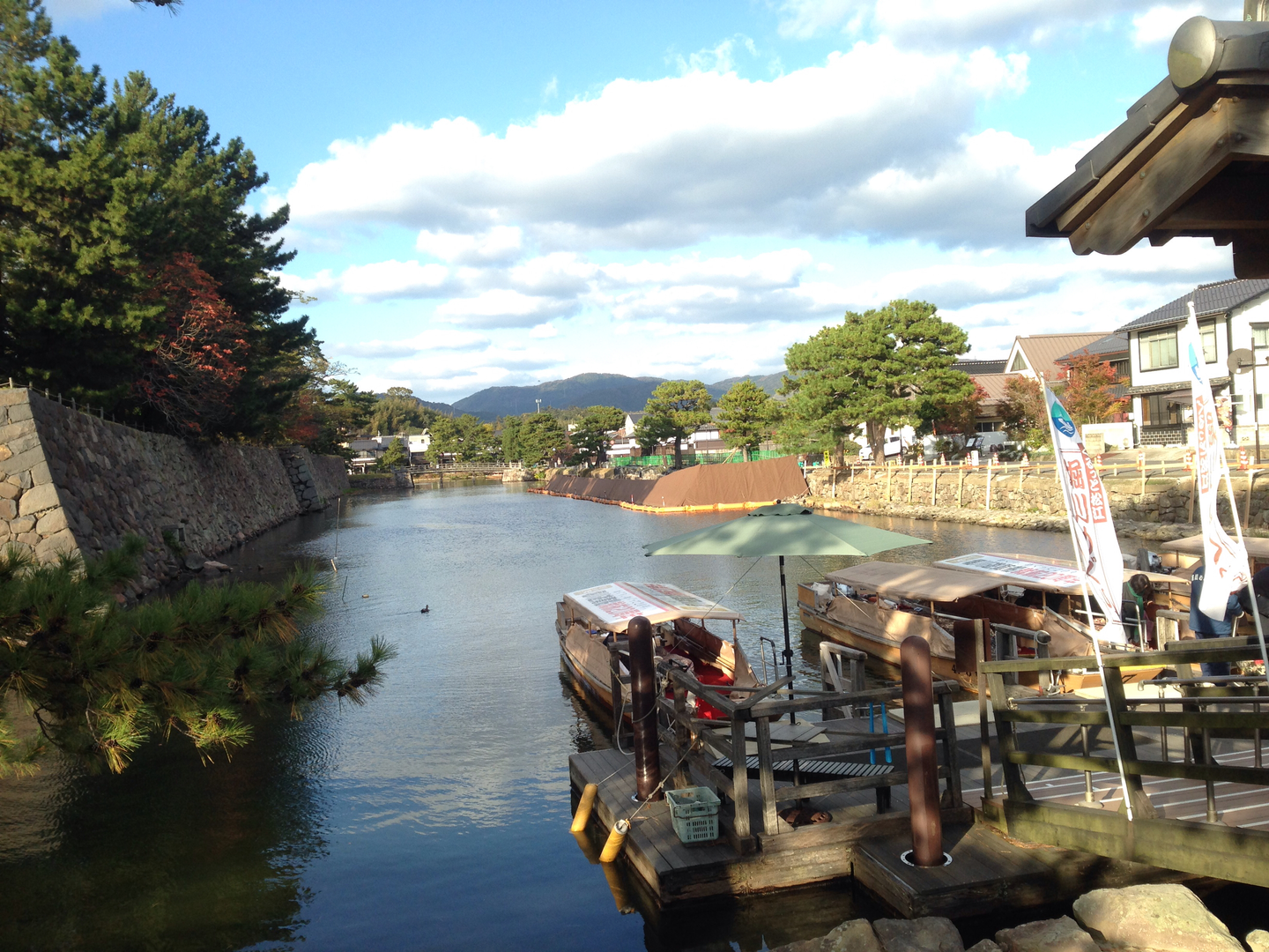 オフィスのすぐそばには、国宝松江城。お堀をめぐる、堀川遊覧船。