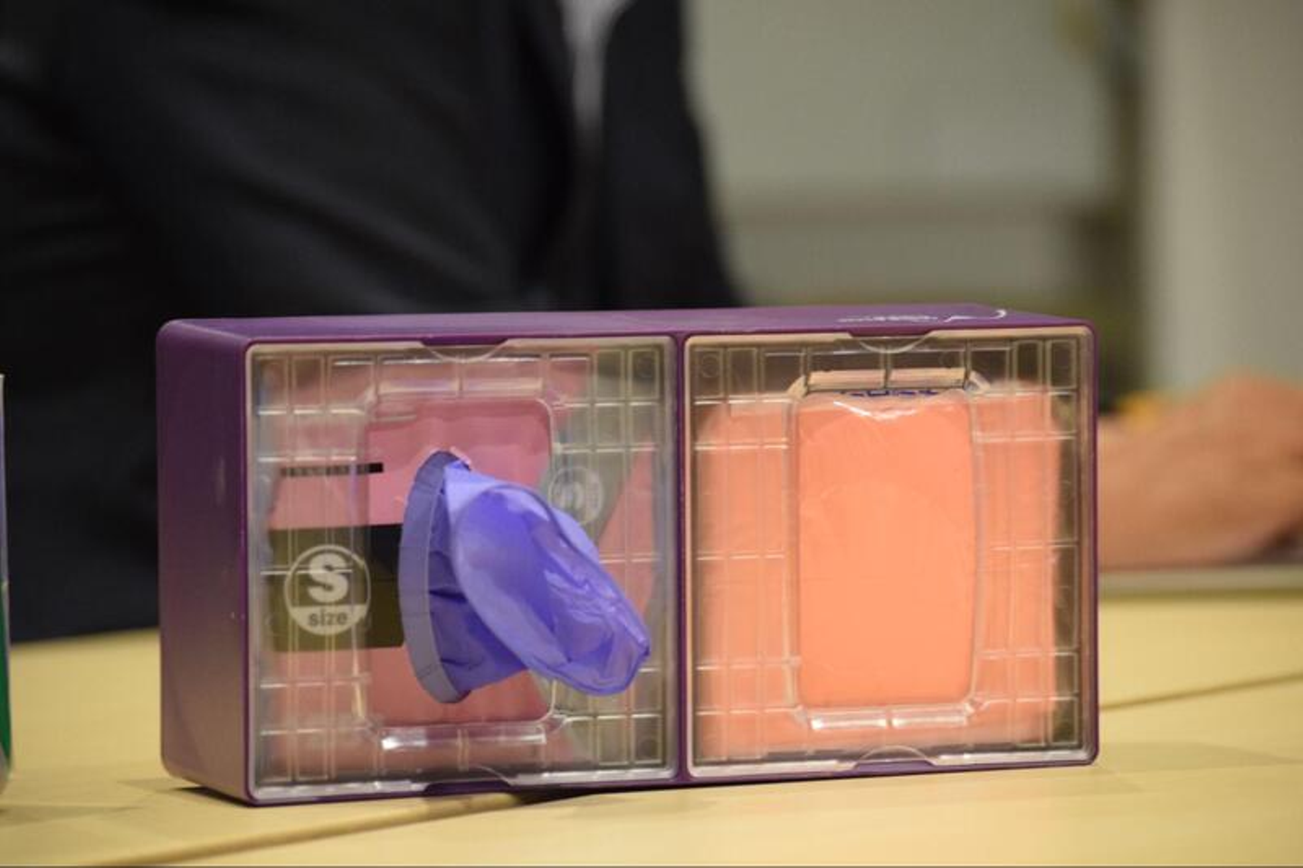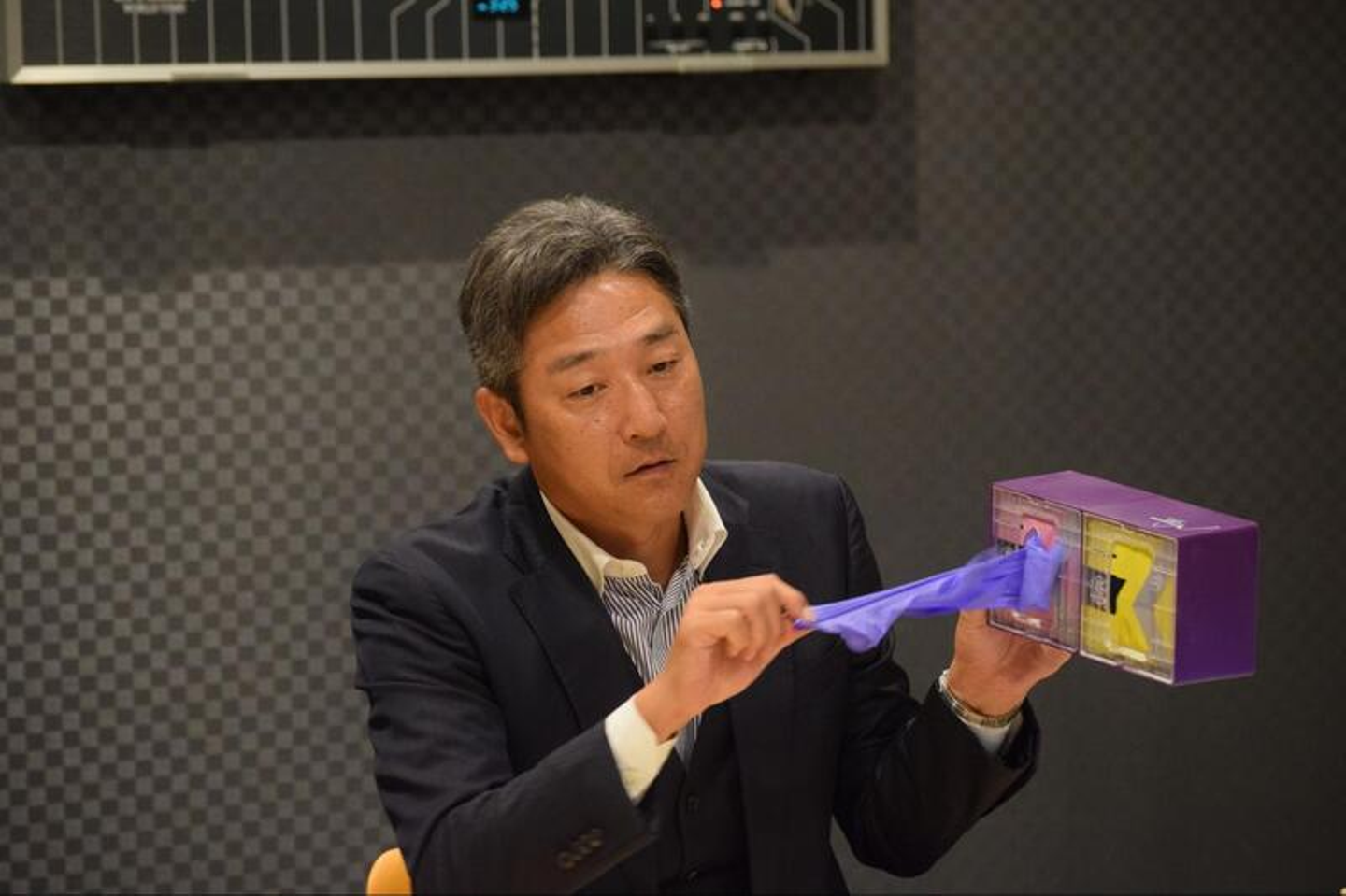 当社の使い捨てニトリルグローブ「グレイシアハイジーン」は特に反響が大きく、当事業部の主力商品となりました。品質そのものの高さに加え、一枚ずつ手首の部分から取り出せる「ディスペンサー」との併用が高評価を得る要因になっています。