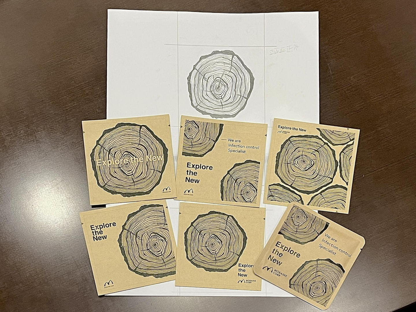 バスソルトのナチュラルさとモレーンの積み重ねてきた歴史をどう組み合わせるか、クラフト紙の質感をどう活かすか……と思い、紙をひたすら触りつつ思考を重ねた結果、年輪というモチーフを採用しました。モレーンが刻んできた歴史やこれからも皆さまと一緒に成長していきたいという願いが込められています。