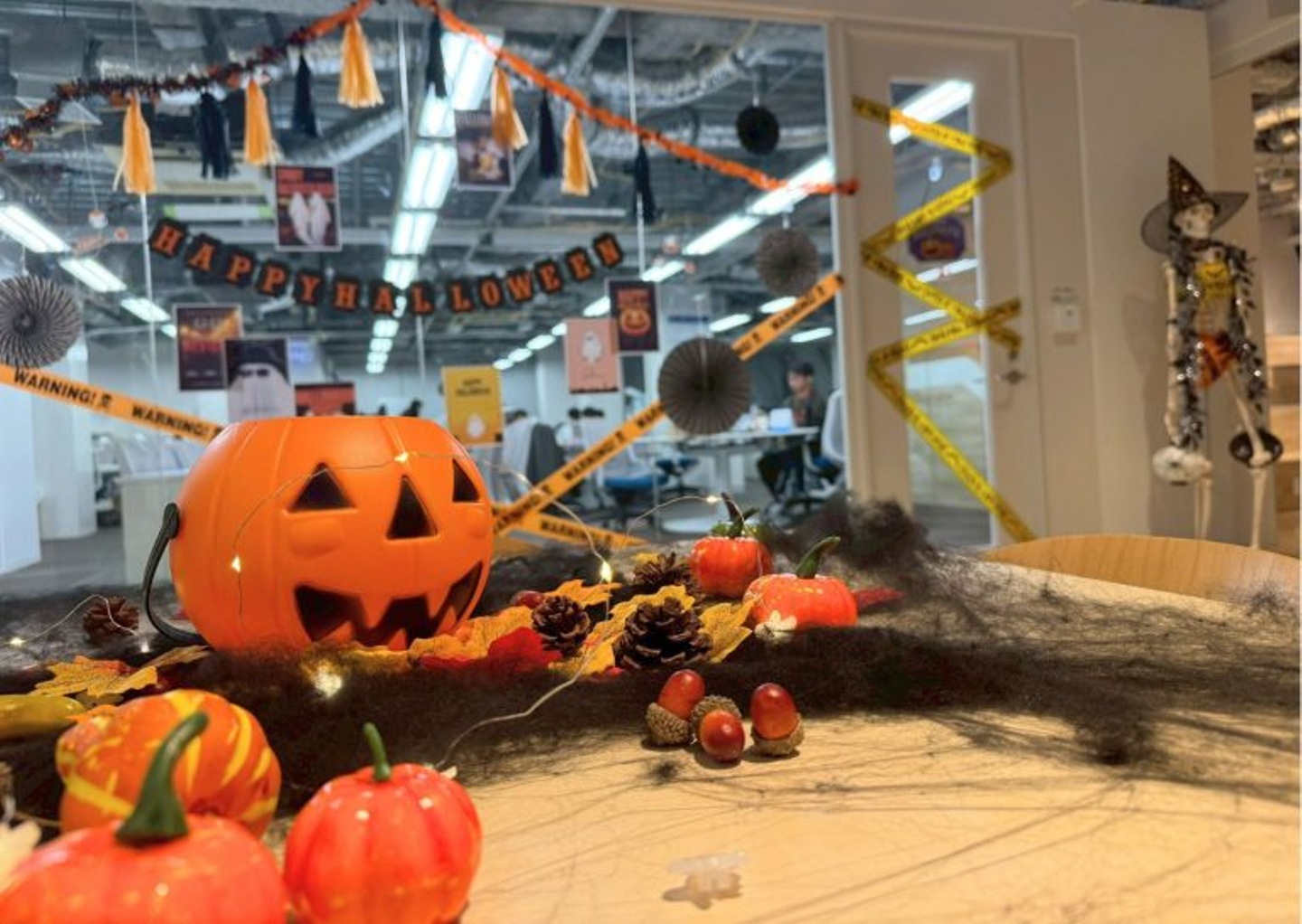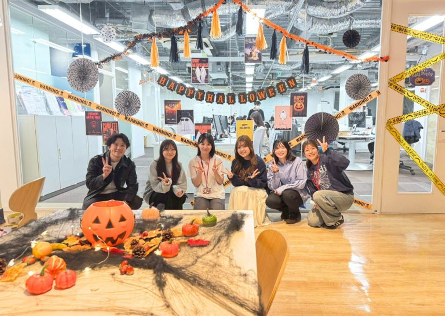 各拠点では新卒メンバーの協力もあり、オフィス内はカボチャやおばけの装飾でハロウィンムード一色に彩られました。
