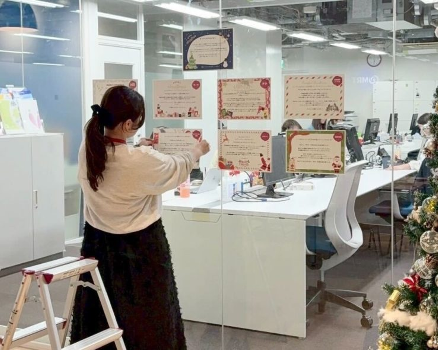 寄せられたメッセージは、クリスマスツリーの飾り付けと一緒に飾られ、オフィスにさらに温かい雰囲気を添えてくれました。