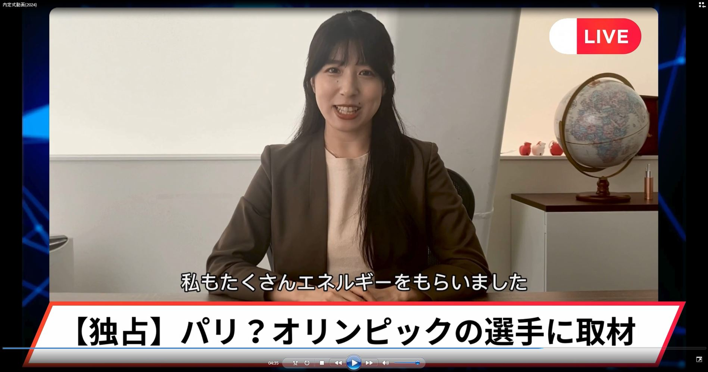 今回は「パリオリンピック」をテーマに、MRT社員に協力してもらい、選手インタビュー形式で撮影。動画内ではクイズも出題され、皆さんは真剣に視聴していました。