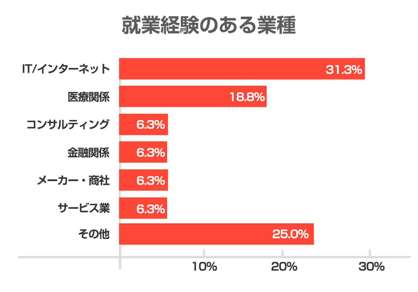 その他として、鉄鋼会社や弁護士法人、人材会社など様々な業種を経験された方がいます。どのような職種経験であってもみんな活躍しています。