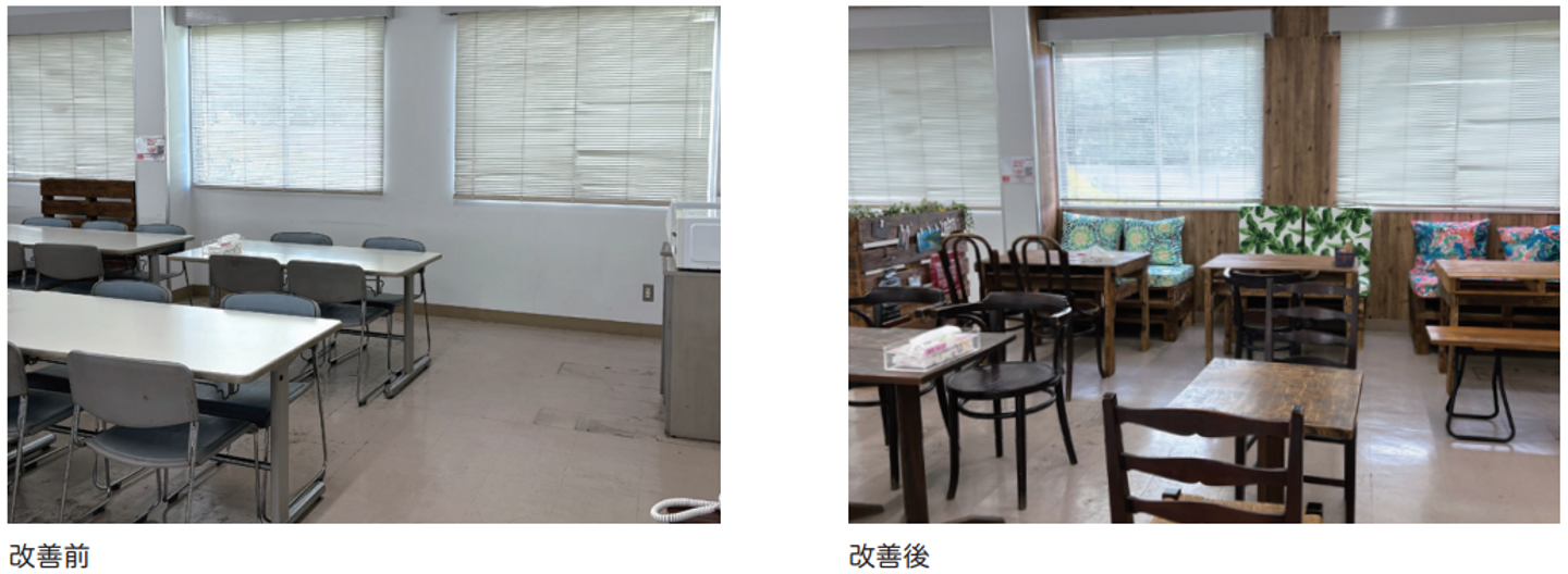 調査は27名より回答をいただき、総じて各設問への満足度は高いものの、福利厚生とキャリア制度の満足度は低調でした。また女性が活躍する職場にするために最も重要と思われる設問に対し、休息スペースを含んだ職場環境の改善を挙げた方が最も多い結果となりました。この調査結果を受けて、女性活躍推進プロジェクトでは女性従業員がくつろげるように食堂のスペースをカフェテリア風に改善し、高い評価を受けました。