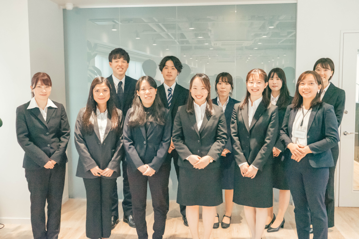 入社式の写真。記念すべき1期生の新卒社員は国内メンバーと海外事業部のメンバーを合わせて11名でした。
