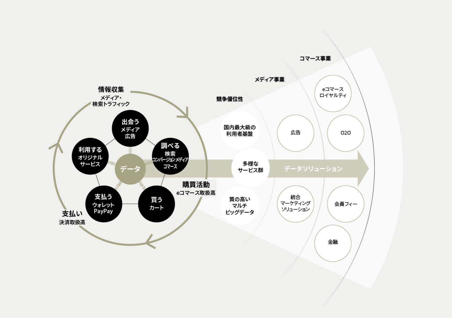 また間接的に貢献しそうな点で言うと、mybestとZHDが展開しているサービス同士でシナジーが生まれる点です。ZHDは統合事業戦略の中で「出会う」「調べる」「買う」「支払う」「利用する」という5つのユーザーアクションを定義しています。