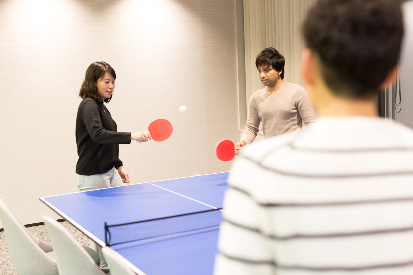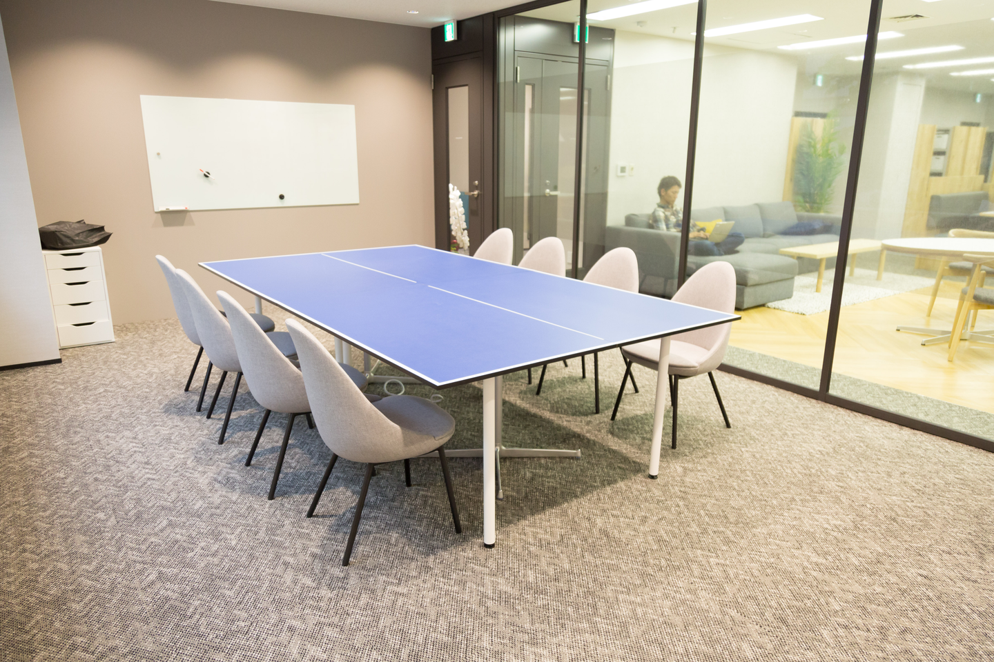 そう、なんと、会議室の机が卓球台にもなるんです。毎日昼休みに卓球大会が開かれるので、運動不足も解消されますね!