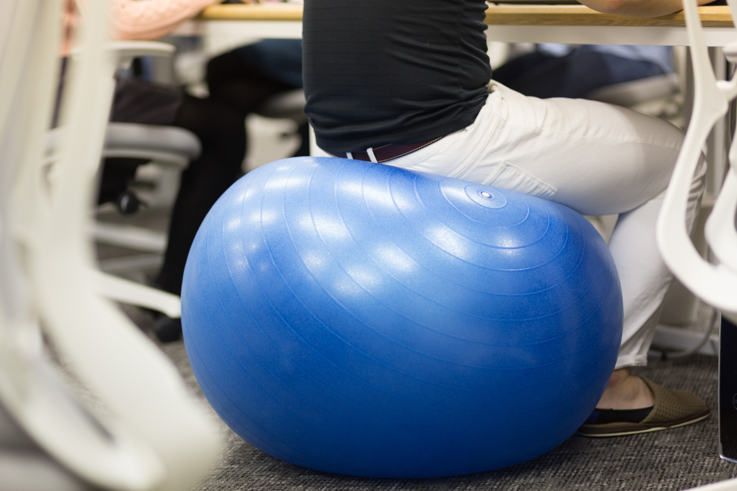 なんとバランスボールで仕事をされていました!こちらの方がしっくりくるそう。この様にオフィスは緊張感も適度にありながら、とても自由な雰囲気です。