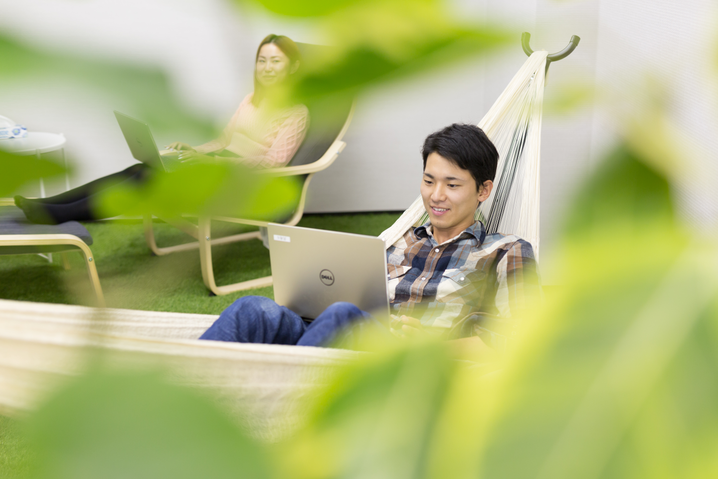 さらに、カフェスペースの奥にはなんとハンモックが!ゆらゆらハンモックに揺られて南国気分が味わえます。仕事が進むのかは、、人によりけりかもしれません。笑