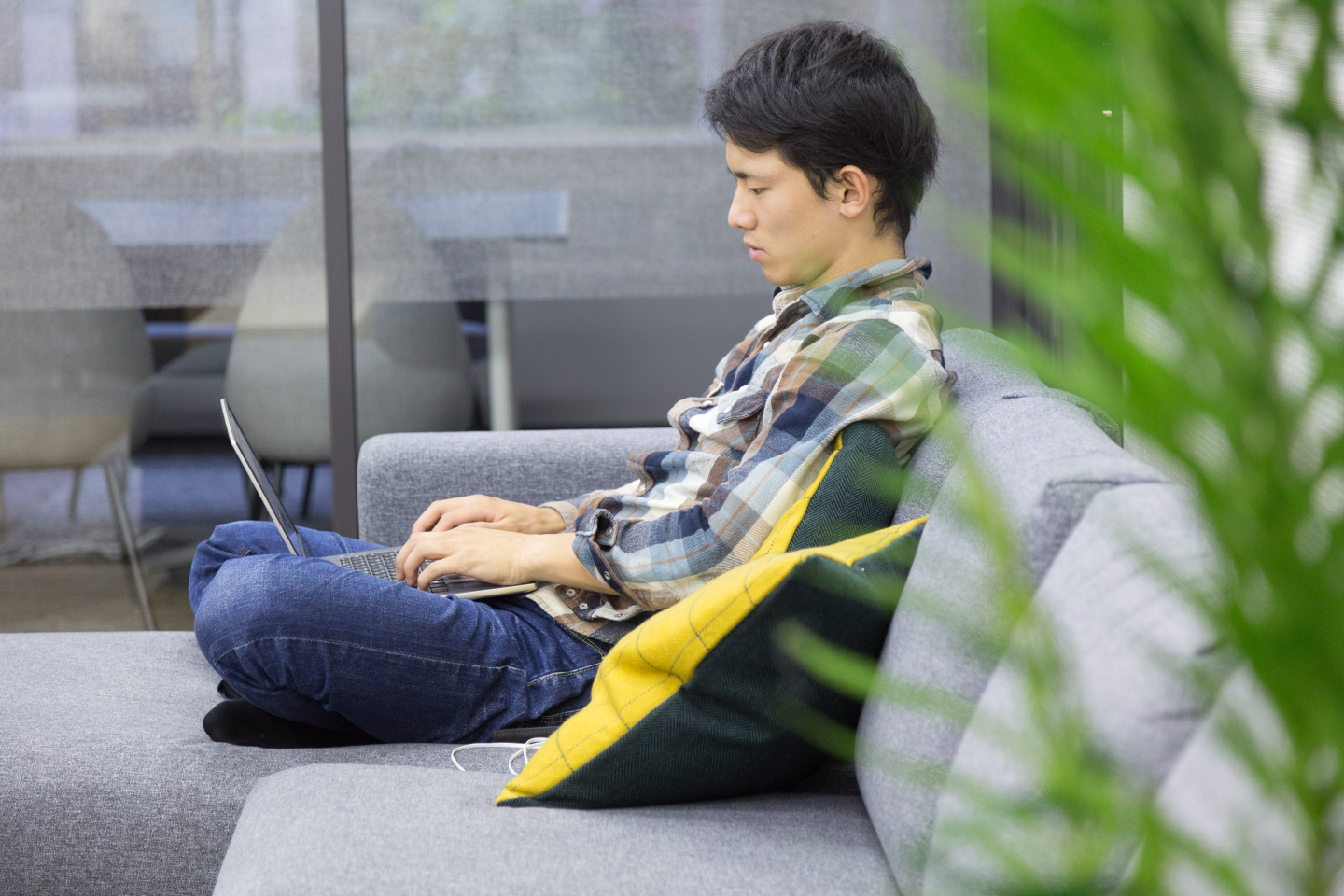 ソファも置いてあるので、足を伸ばしてくつろぎながら仕事をしている、なんて光景も!メインのワーキングスペースよりさらにリラックスした雰囲気です。