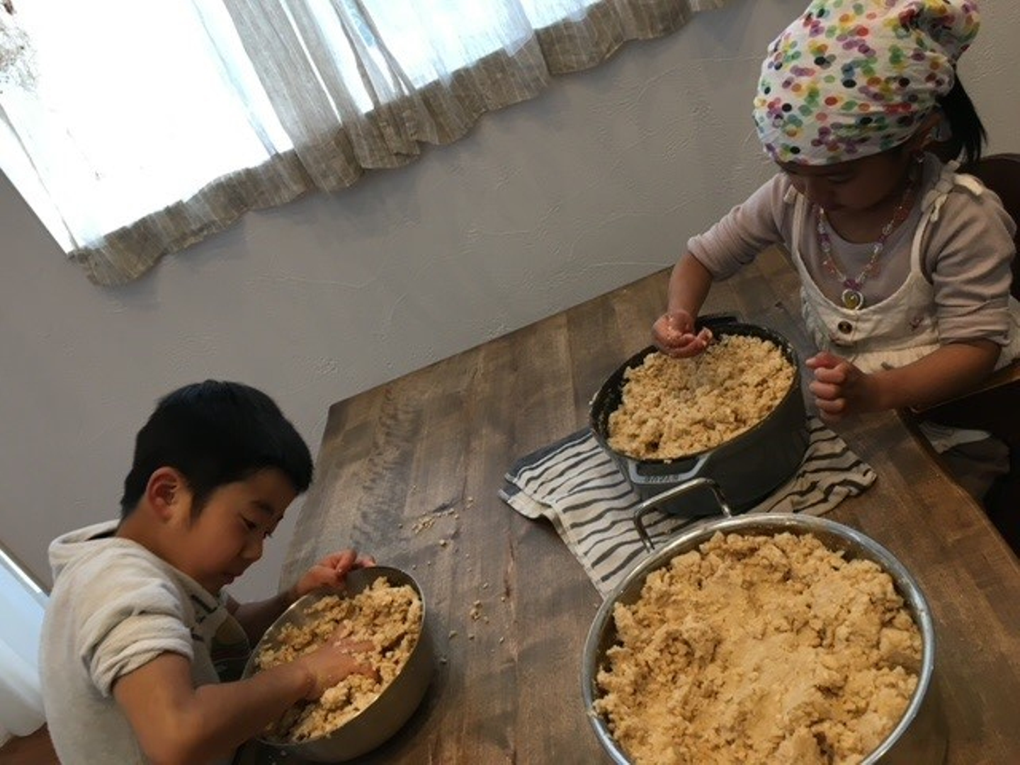 豆をじっくり茹でで、みんなで潰して麴と混ぜて・・・原材料は市販のものと同じでも、まったく違う味になるのが不思議で面白いところ。この味噌で作るお味噌汁は我が家の「ほっとする味」になっています。