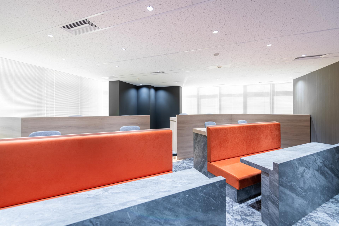 弊社のコーポレートカラーであるオレンジの椅子が映えますね!