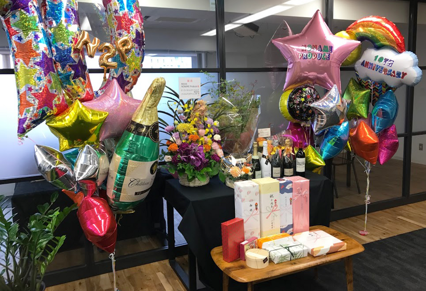 パーティーでは、オフィス内もバルーンで飾り付けをしたり、