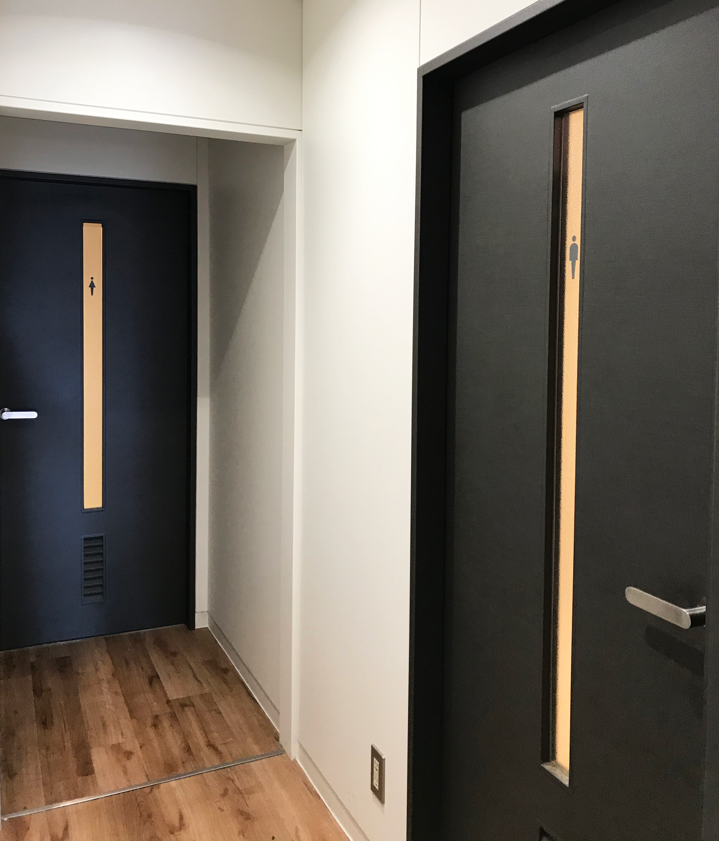 エントランスを出た共用部分には、男女別のトイレが完備されています。
