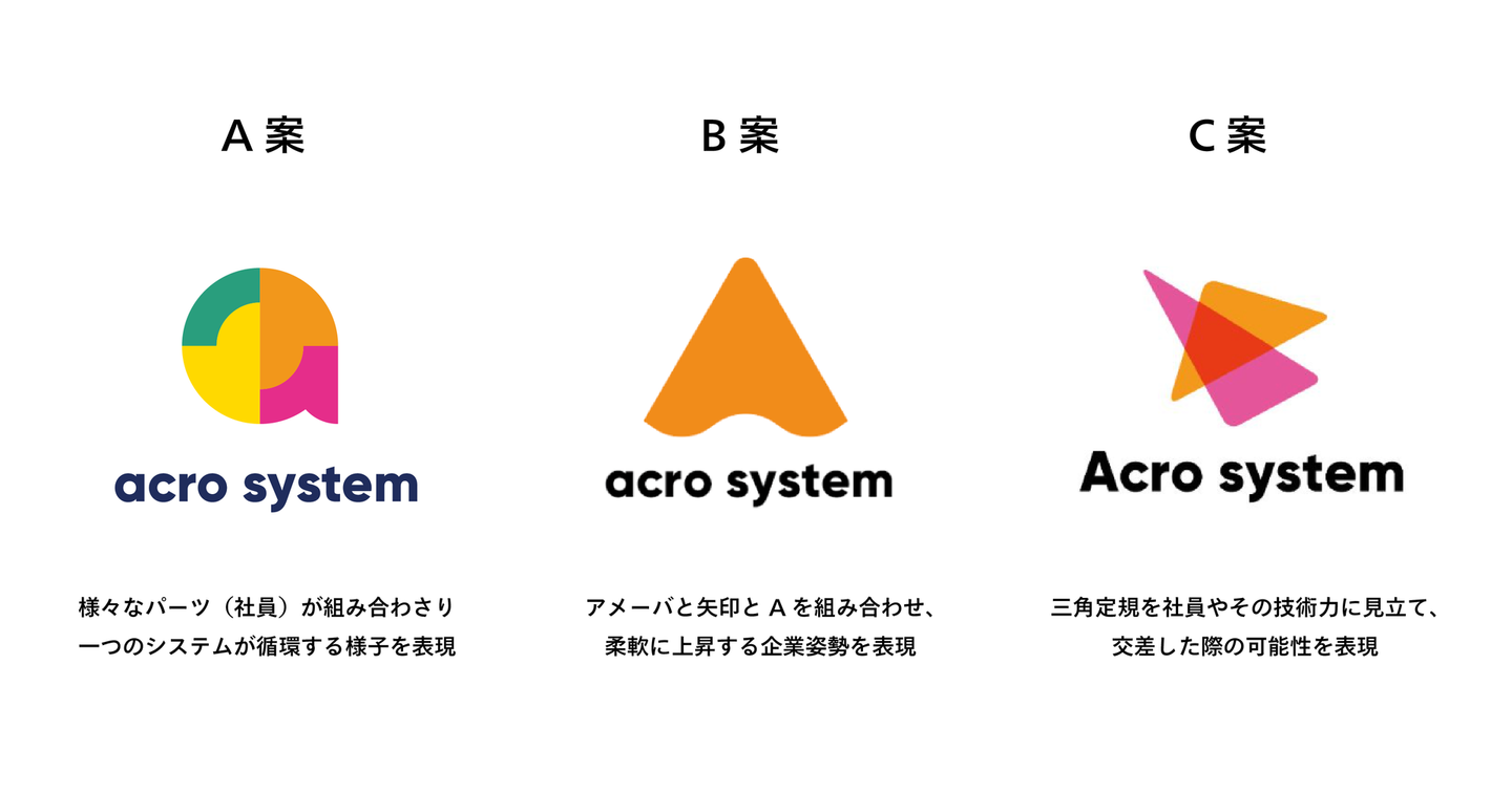 今回は弊社のお客様であるアクロシステム様にご了承いただき、実際に行ったロゴ開発プロセスをご紹介させていただけることになりました。
