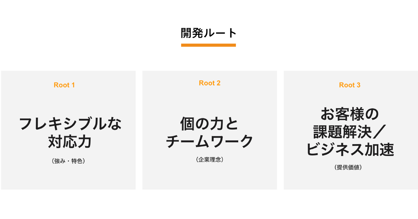 今回は、ヒアリングさせていただいた内容や、自分でリサーチした情報から、次のような3つの開発ルートを設定しました。