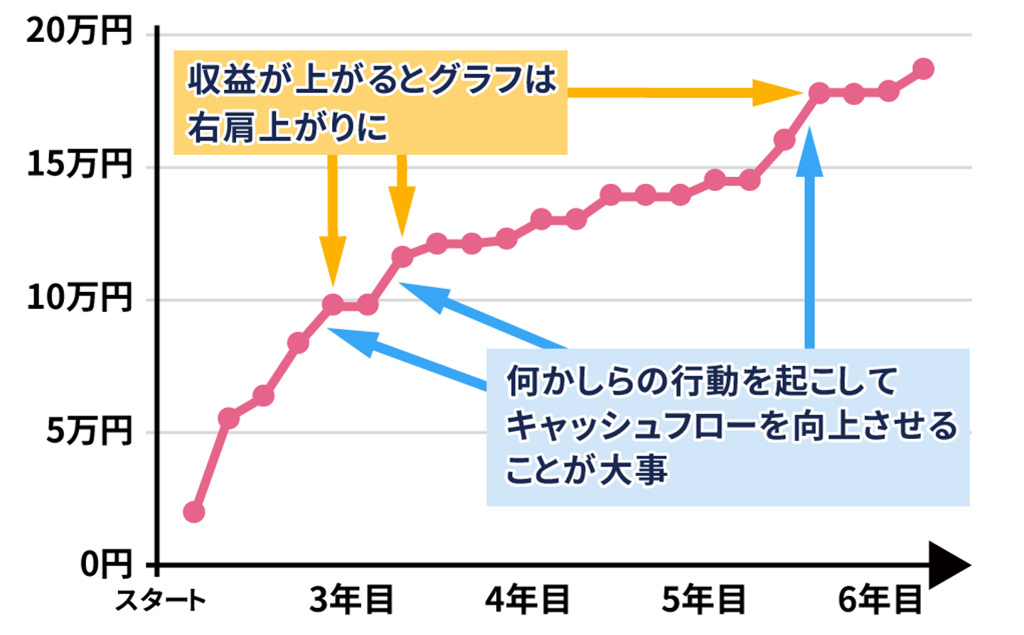 そうして蓄積された様々なグラフを比較することで、マンション投資でキャッシュフローが向上しているオーナー様と、あまりうまくいっていないオーナー様の違いが見えてきました。そして、マンション投資がうまくいっているオーナー様のグラフには、ある特徴が共通してあることがわかったのです。