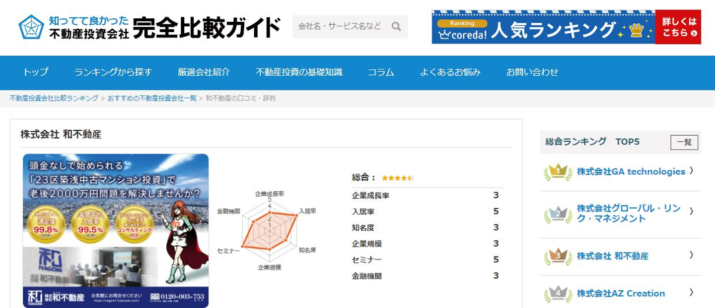 その他に和不動産の評判・口コミを紹介している「不動産投資情報サイト」