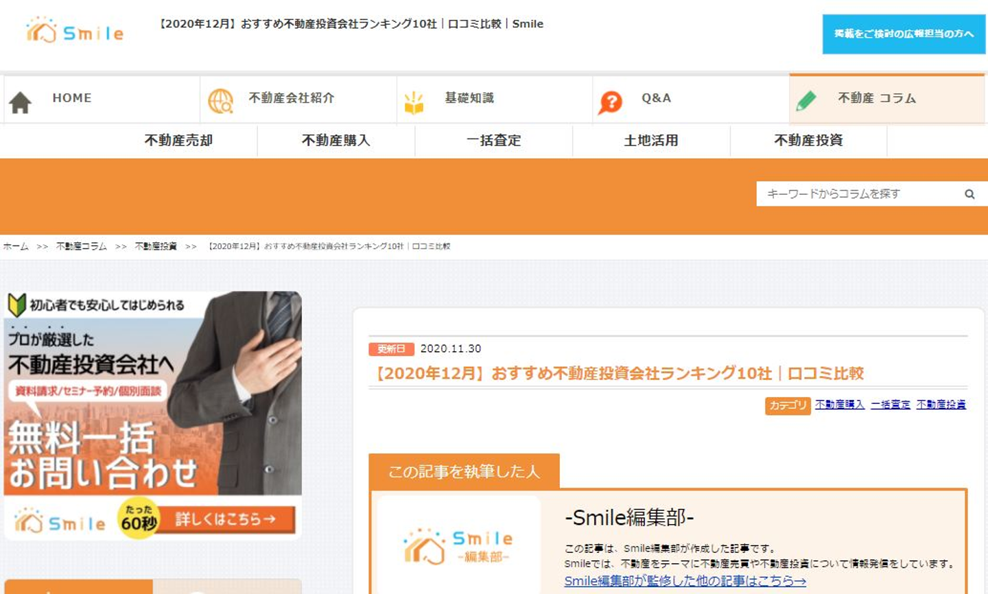 【不動産の情報を発信、関わる人を笑顔に『Smile』】おすすめ不動産投資会社ランキング10選に掲載されました!