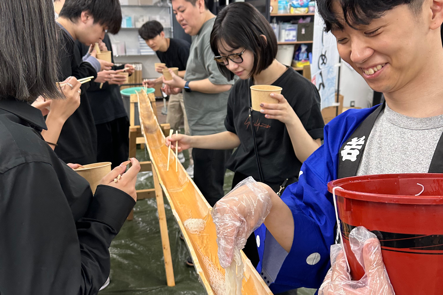 夏だからそうめん食べたい!ってなって、11mの本物の竹を使って、みんなで流したそうめんをしたり...