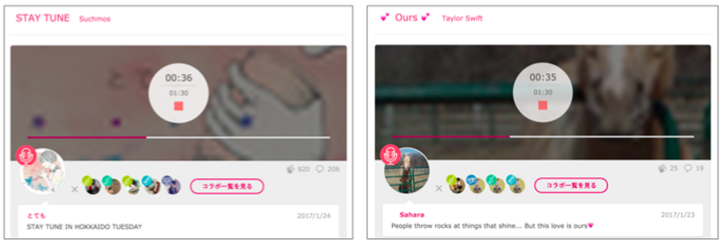 まるで一緒にスタジオで録ったような音源ですが、nanaの重ね録り機能を使って、遠く離れた人同士、知らない人同士のコラボレーションで作られているんですね。こういうサウンドが今では月間200万曲ほど投稿されています。